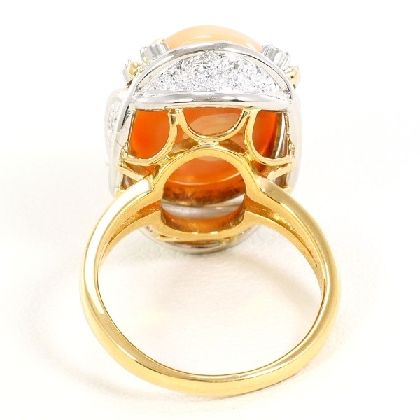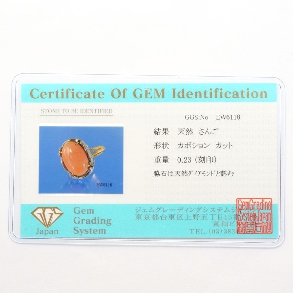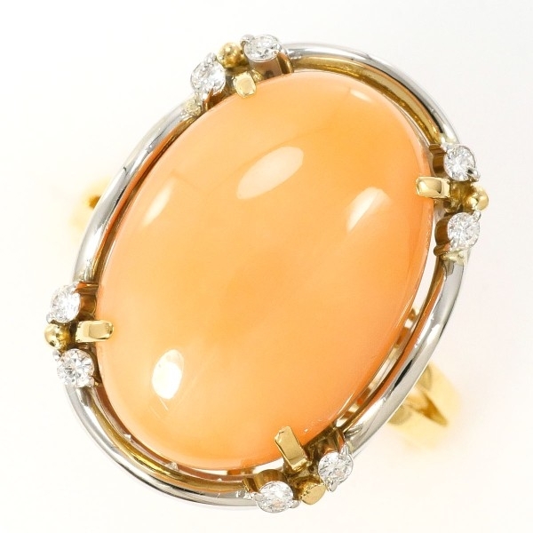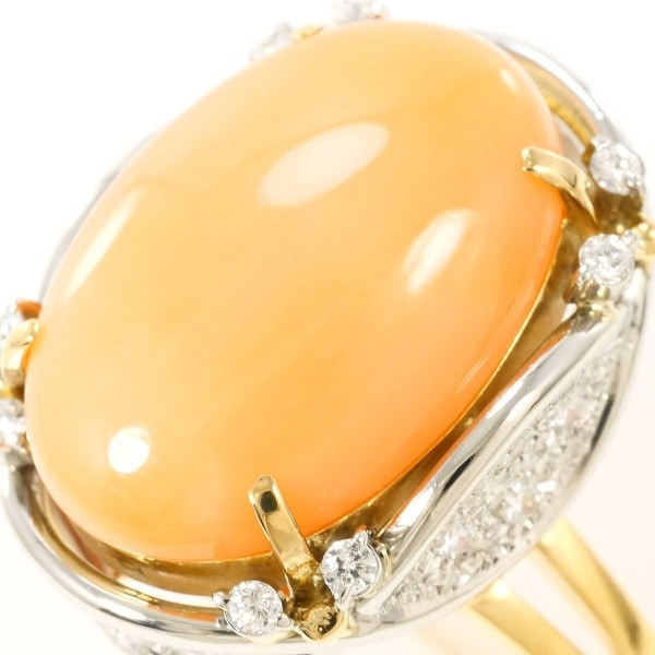 PT900 K18YG リング 指輪 14号 サンゴ ダイヤ 0.23 カード鑑別書 総重量約11.5g 中古 美品 送料無料 | |