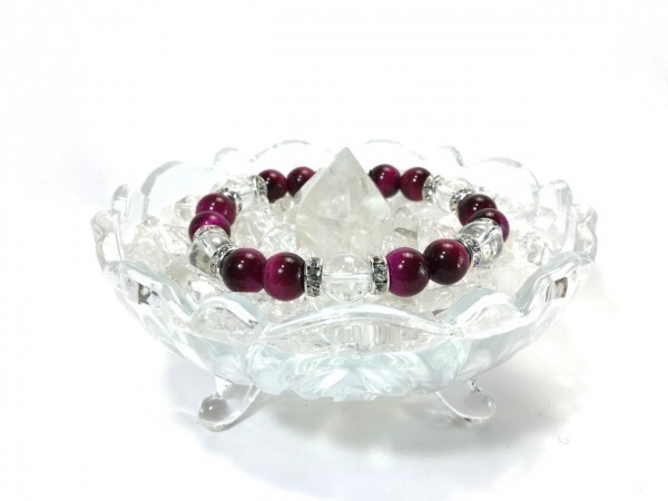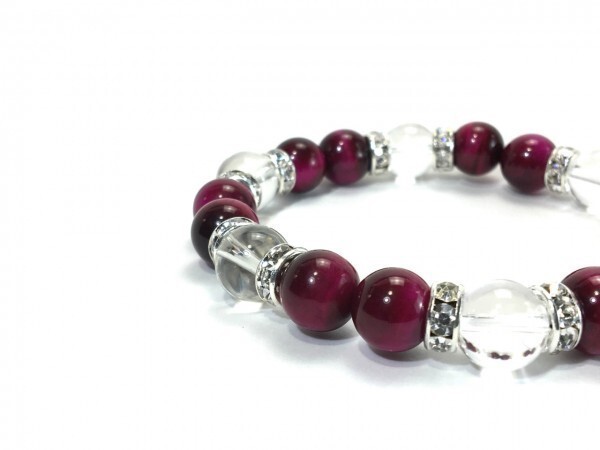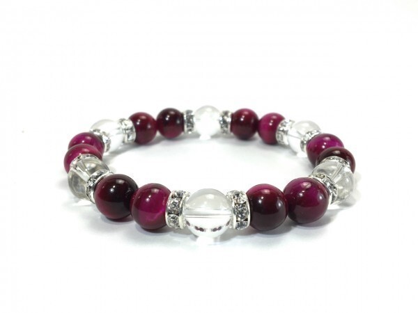 ピンクタイガーアイ×水晶 パワーストーン ブレスレット 天然石ブレス 10mm (ロンデル:シルバー) メンズ・レディース 浄化済み