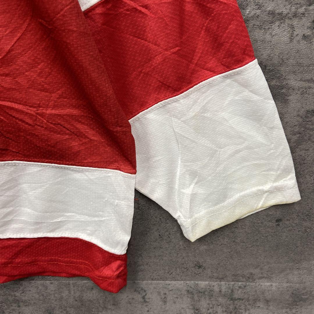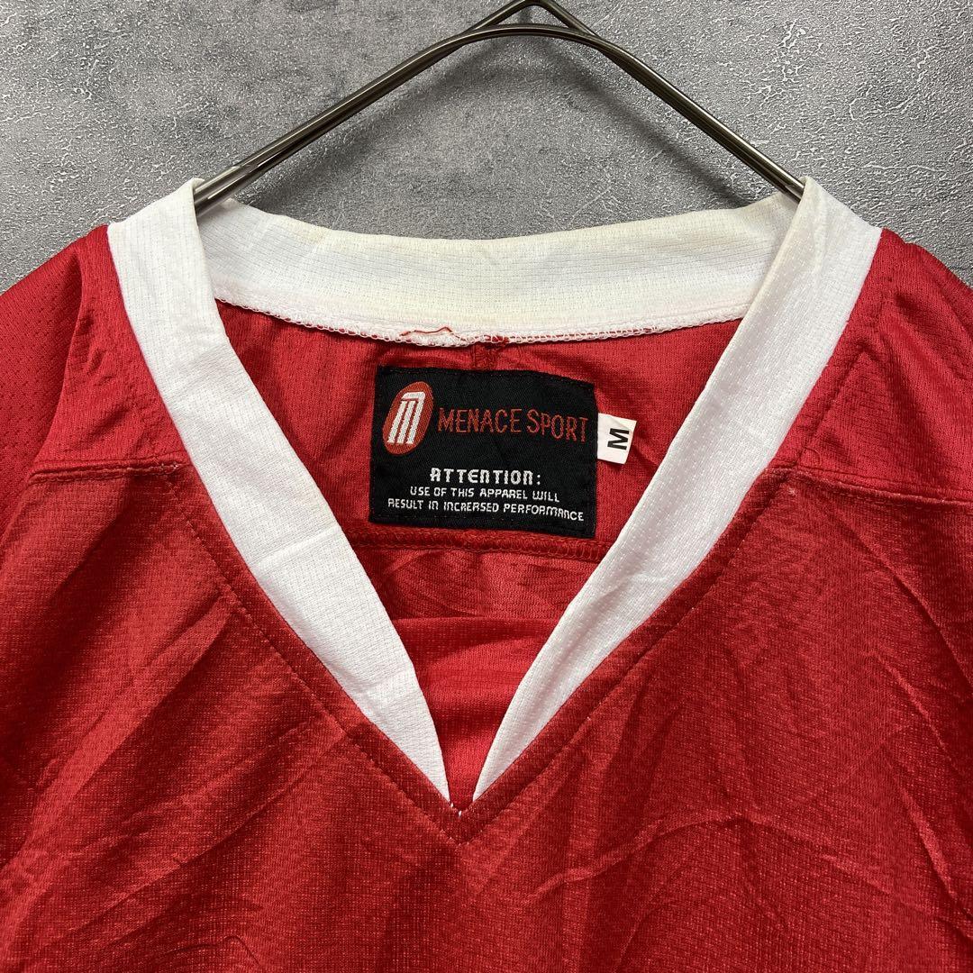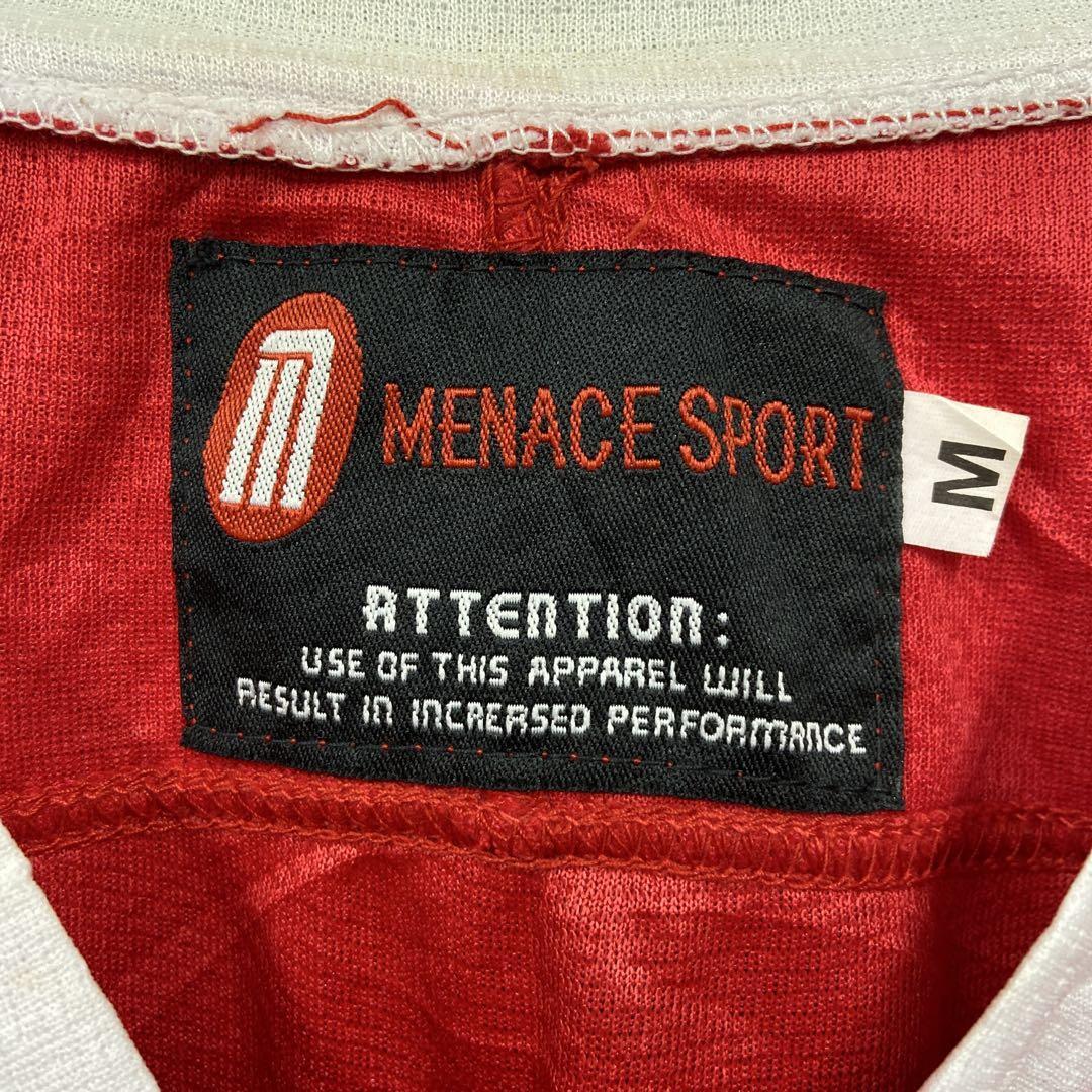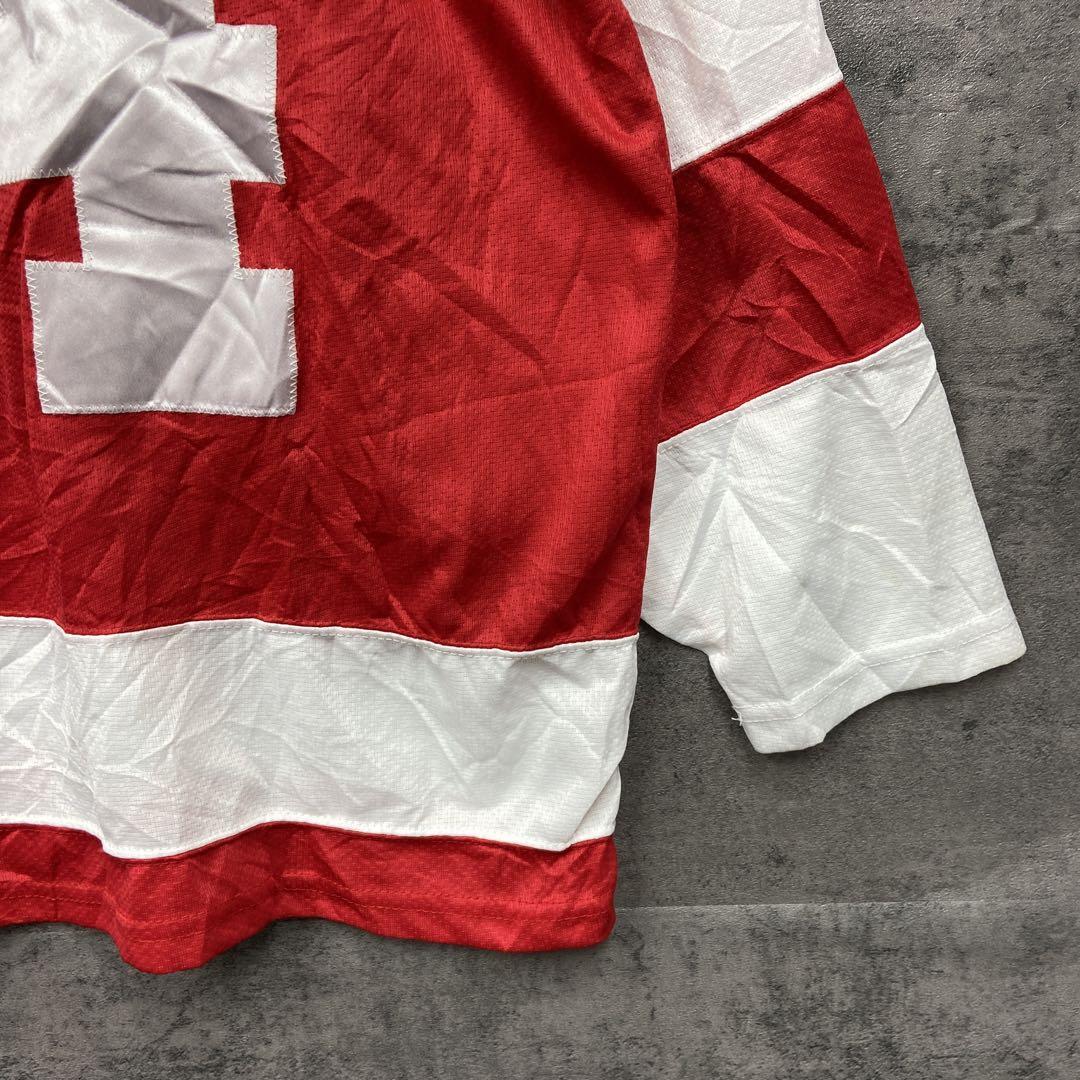 レッド×ホワイトの配色に「TW TEAM WISCONSIN」ロゴと背番号14が入ったメナススポーツのホッケージャージで、古着ならではの存在感が楽しめるスポーツユニフォームです。