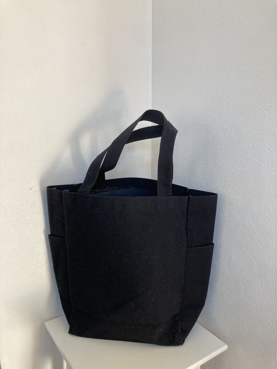 サイズ 黒 36×43㎝ まち14㎝ 両サイドポケット付き 内側ポケット付き
