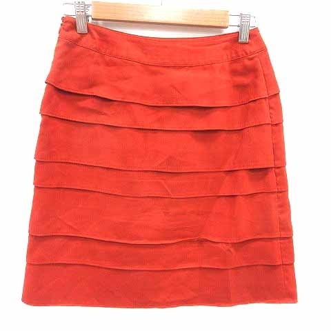アナイ ANAYI 台形スカート ミニ ティアード フェイクスエード 38 M 赤 朱色 レッド /YK レディース