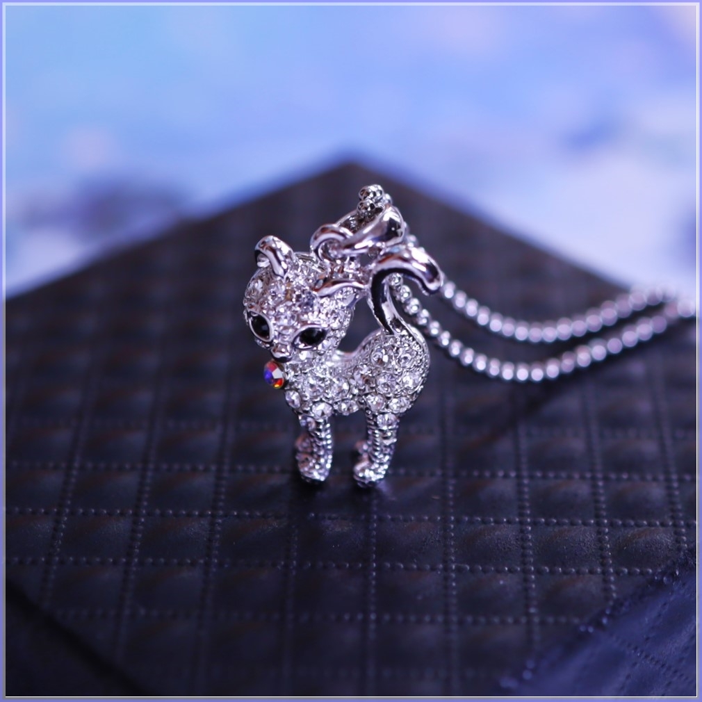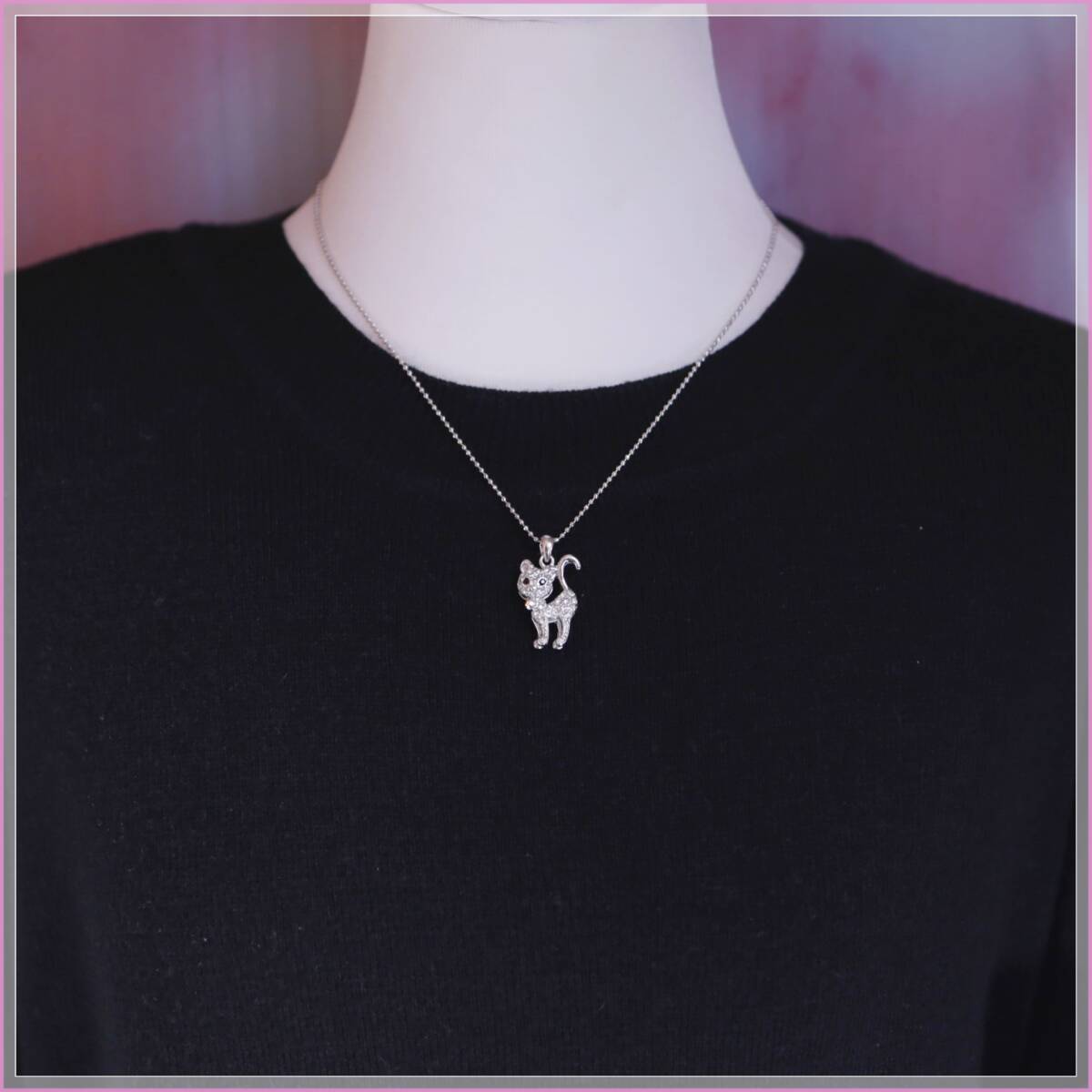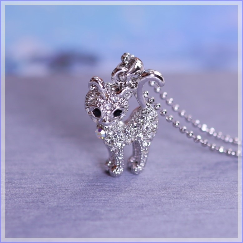N8079/立体猫ペンダント ラインストーンネコ パヴェキャットネックレス 3Dねこ ネコ好きさんへプレゼントに 立体的 キラキラ
