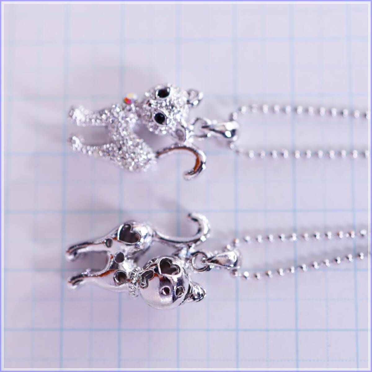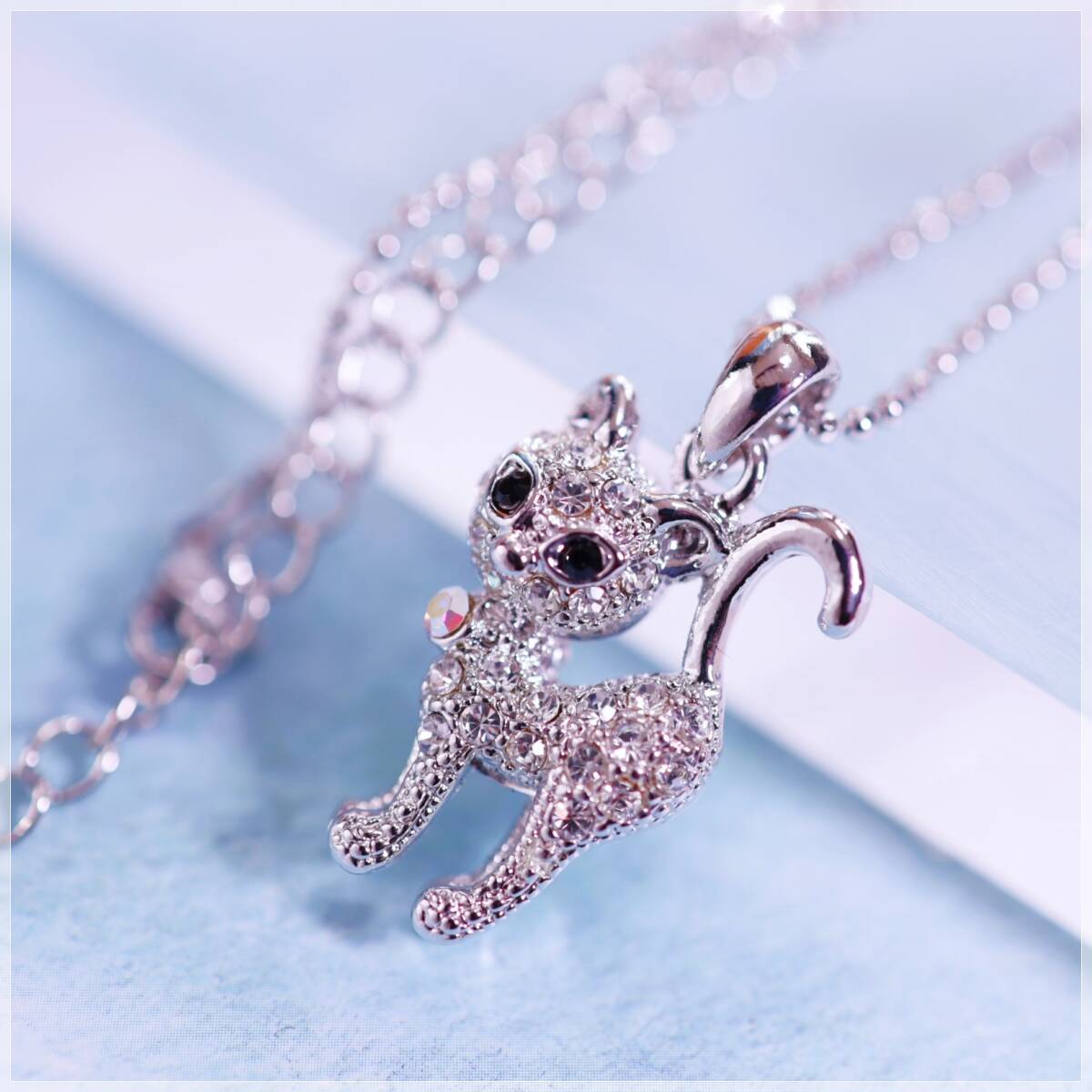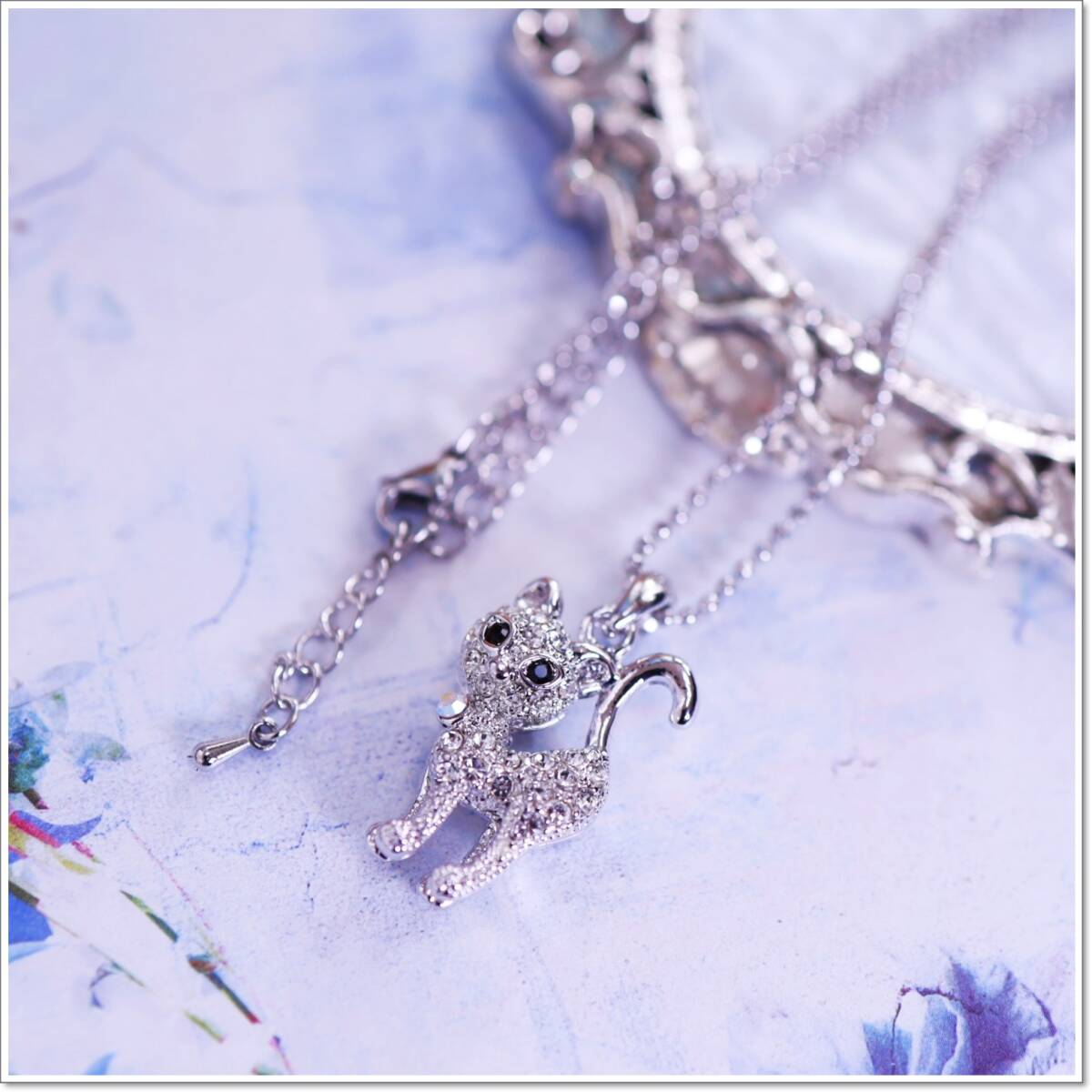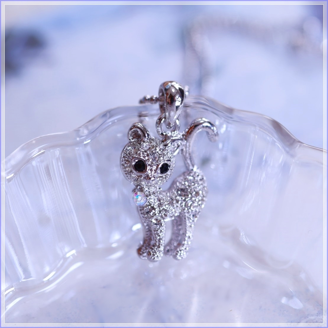 ラインストーンがキラキラと輝く 立体的な猫ちゃんのネックレスです。