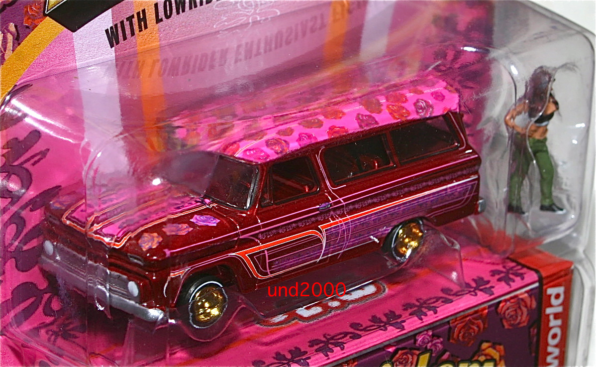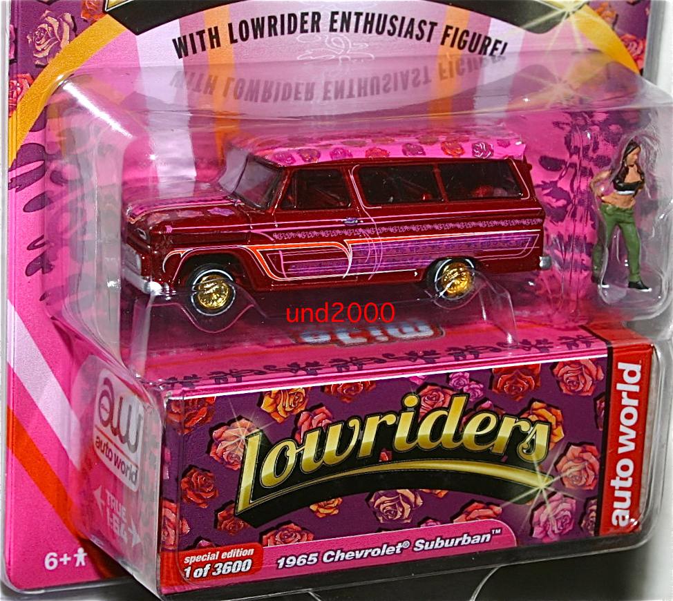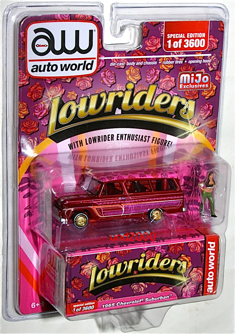 Auto World、Mijo Exclusive、1965 Chevy Suburban Lowriders。スケール1/64、トミカ・サイズ。フィギュア付き。アメリカの問屋さん MIJO (M & J Toys) 3600台の限定生産品のチェイスカー(トレジャーハント)、ゴールド・ホイール。ウルトラ・レッド。並行輸入品。未開封新品。ブリスターに若干のスレがあります。量産品の製品のクオリティーについてはノークレームでお願いいたします。お支払いはヤフーかんたん決済のみ。東京発、ゆうパック持込60サイズ(東京700円 - 沖縄1330円)、レターパックプラス600円、または定形外郵便(追跡番号、保険無し)450円の発送となります。(上記の送料はこの出品物のみの料金となります。複数落札、同梱包発送の場合、重さ、サイズが変わりますので送料が変わります。3日以内のご連絡、かんたん決済の支払期限内(通常5日、支払方法により異なります)のお支払い厳守でお願いします。入札される前に「自己紹介」もあわせてお読みください。 検索用ワード Autoworld Chevy シェビー UltraRed Chase チェイスカー チェス チェスカー