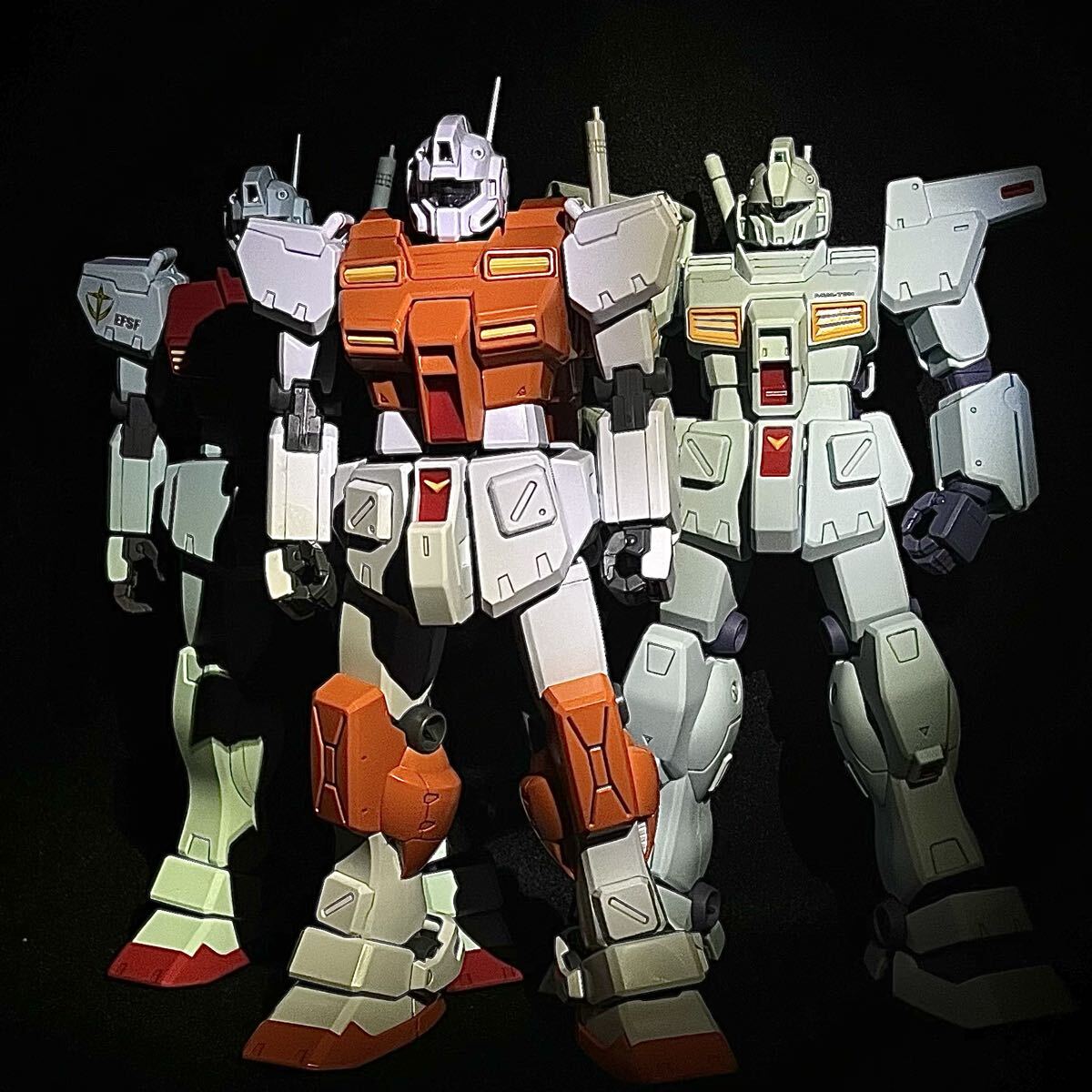 ジムカスタム頭部アンテナ長さが半分ほどになっております。また、パワードジム脚部固定ピンがなく外れやすくなっていますが、軽く接着すれば問題なさそうです!