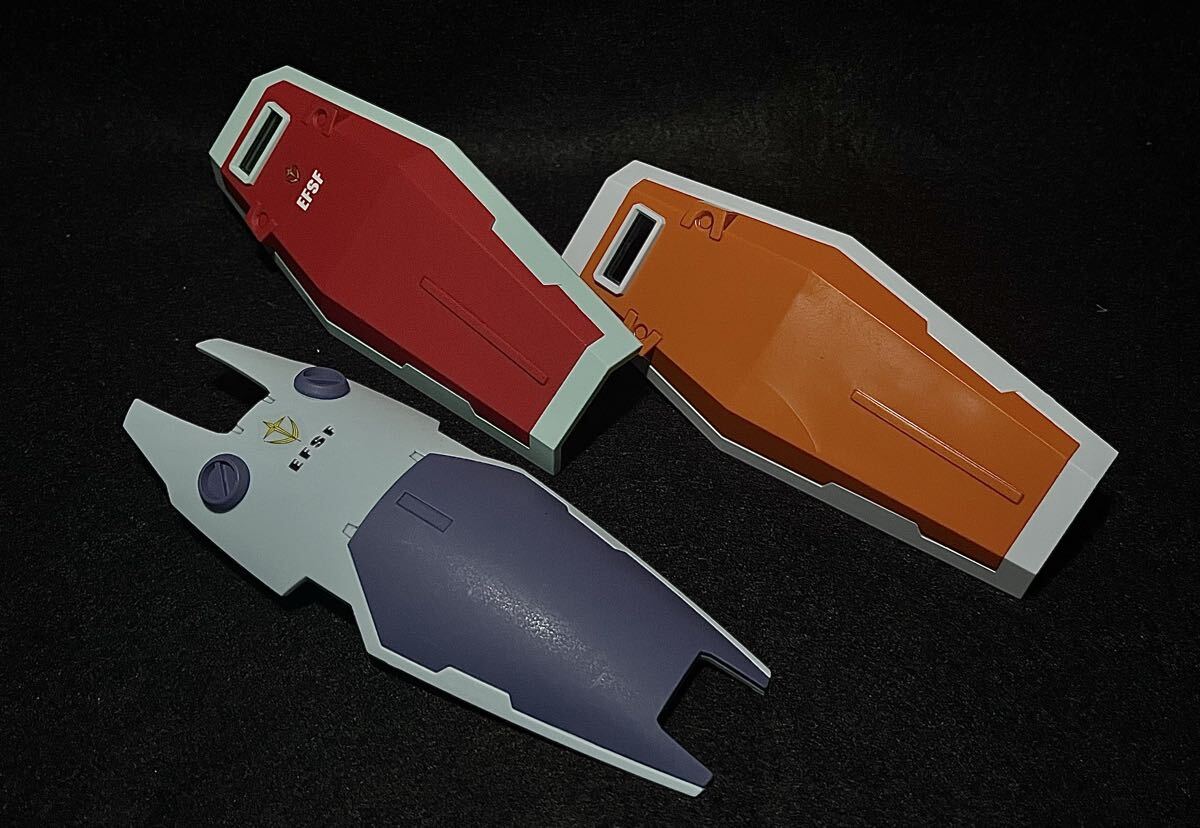 ジム改とジムカスタムは水転写デカール+トップコートを吹いており、パワードジムは素組みになります。