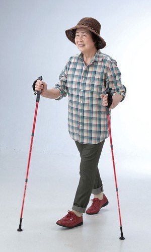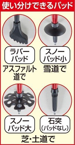 即決可@新品ハートフルウェルフェア 伸縮式ウォーキングポール2本組/レッド | ||||||||||||