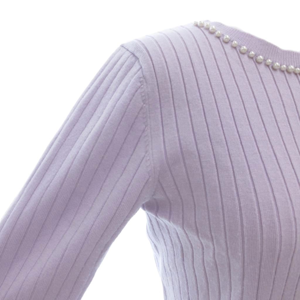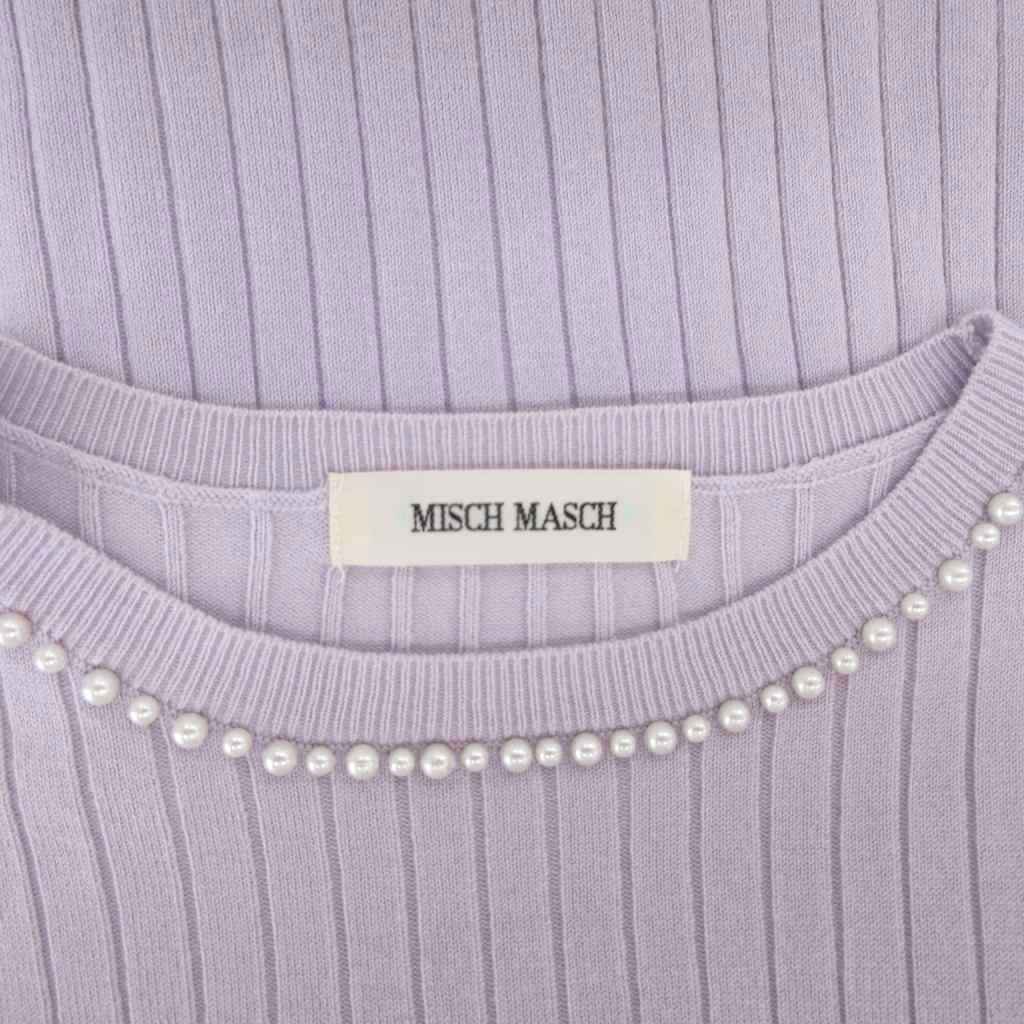 ミッシュマッシュ MISCH MASCH 美品 リブニット セーター プルオーバー 半袖 ビジュー M 紫 /KR レディース