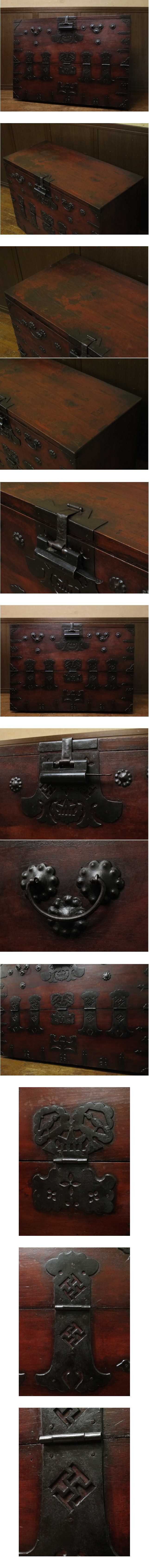 19世紀~20世紀初頭 李朝古民具 朝鮮美術 朝鮮古民芸 松無垢材 卍字鉄地金具 時代 バンダジ 半閉櫃 箪笥 時代家具 時代箪笥 金具装飾 古玩
