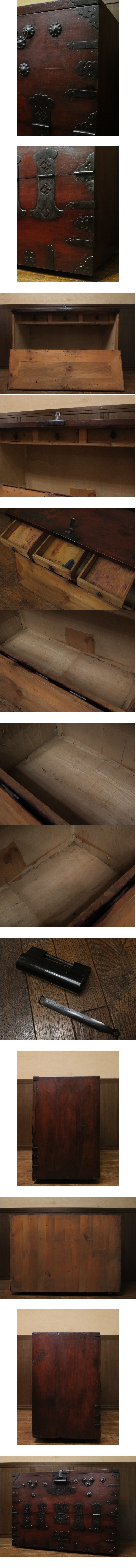 19世紀~20世紀初頭 李朝古民具 朝鮮美術 朝鮮古民芸 松無垢材 卍字鉄地金具 時代 バンダジ 半閉櫃 箪笥 抽斗 時代家具 時代箪笥 金具装飾 アンティーク 古玩