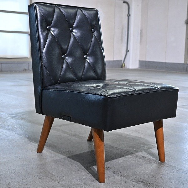 肘掛けのないコンパクトなサイズながらしっかりとした座り心地。
