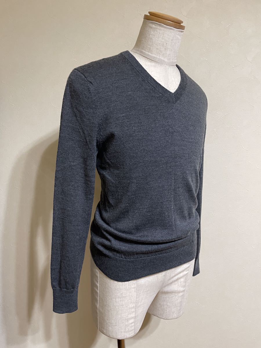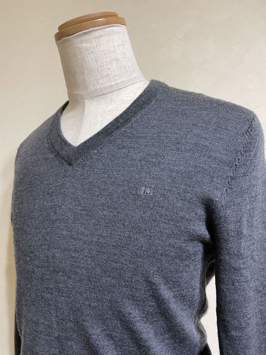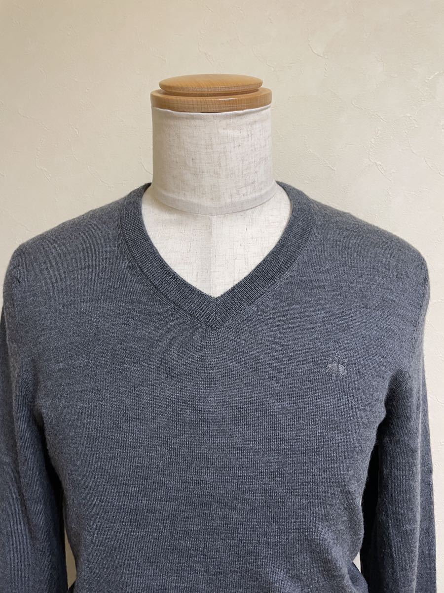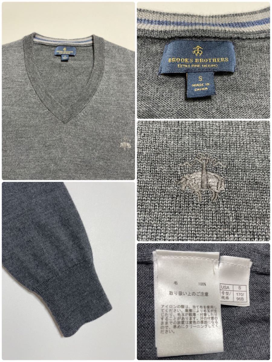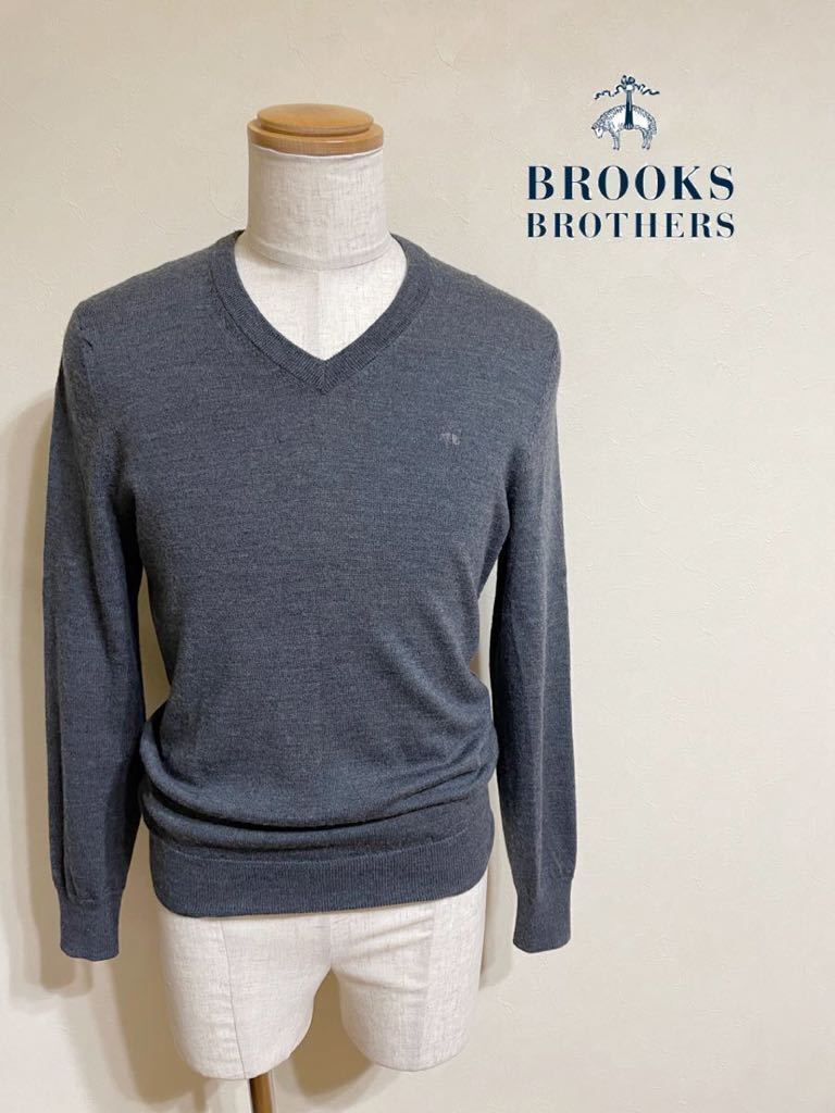 【良品】 BROOKS BROTHERS ブルックス ブラザーズ Vネックセーター メリノウール トップス サイズS 長袖 グレー 170/96B ウール100%