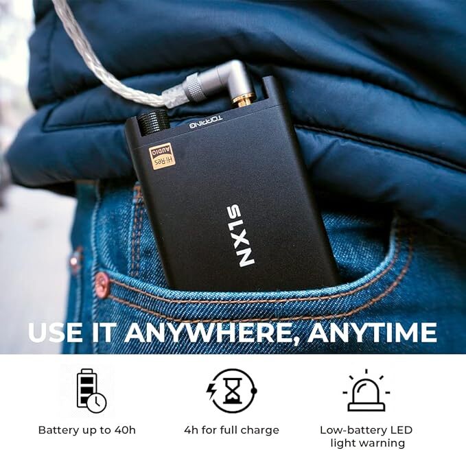 【新古品】Topping ポタアン(タイプc ケーブル バンド 付)ポータブル ヘッドフォンアンプ NX1s iphone X対応 NX1 シルバ  3827_02