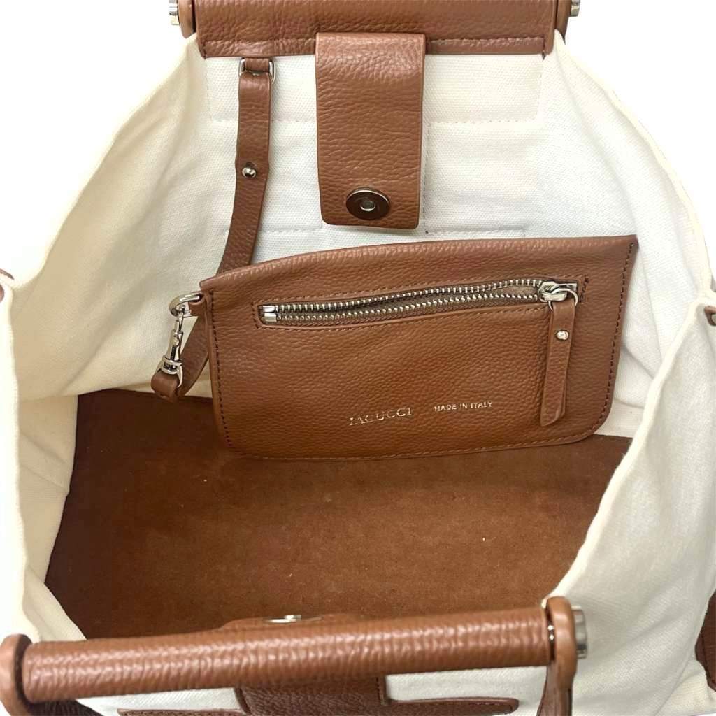 イアクッチ IACUCCI ソルベット キャンバス トートバッグ レザー ハンドバッグ M アイボリー ブラウン レディース