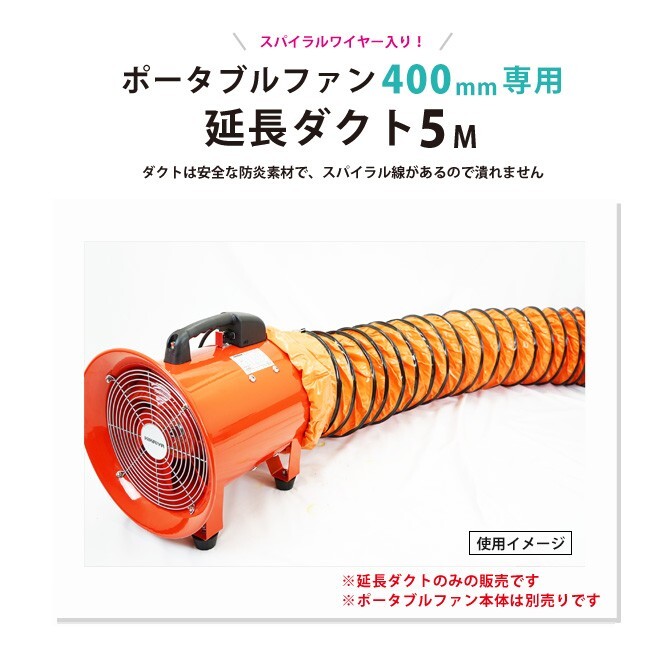 ●本商品はポータブルファン400mm用 延長ダクト のみ となります ●ダクトは折り曲げてもスパイラル線があるので潰れません ●ダクトは安全な防炎素材 ★ポータブルファン400mm本体はこちら |