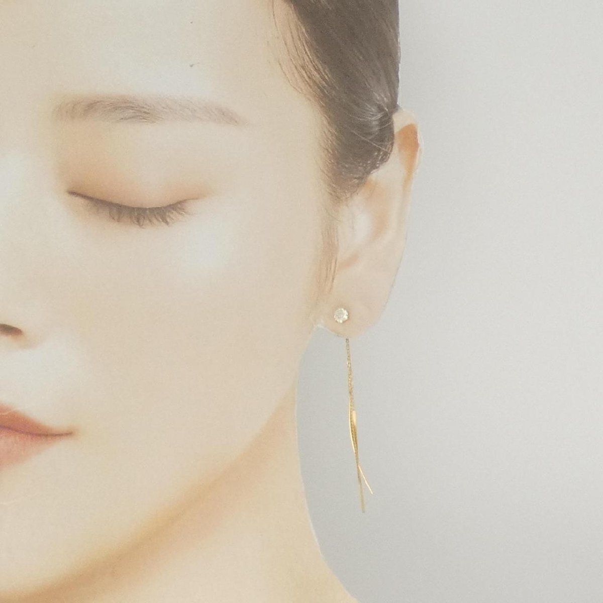 クリアに煌めくダイヤモンドをセッティング。耳元で揺れるデザインが、視線を惹き付けます。