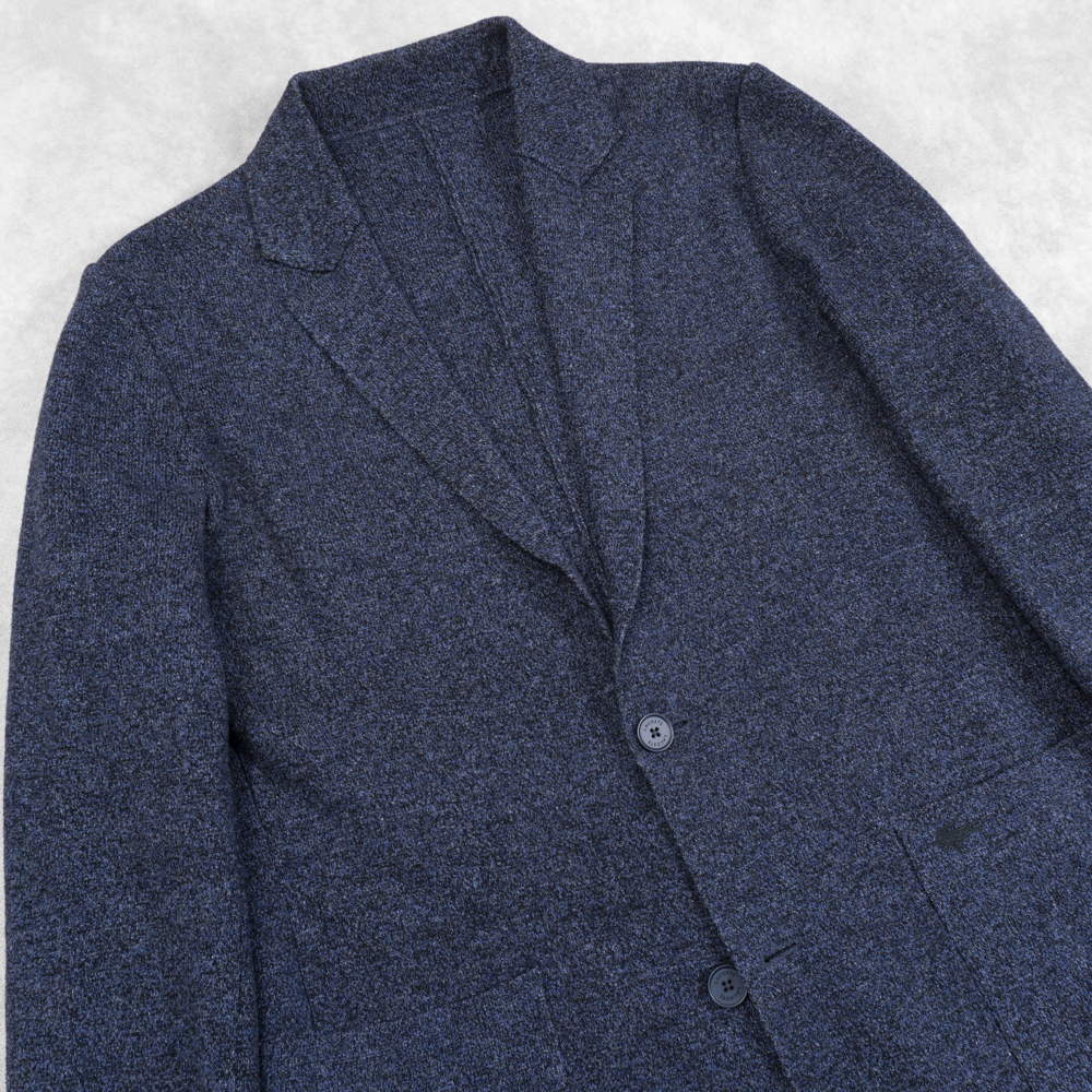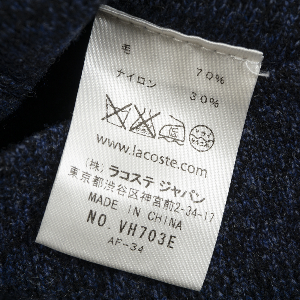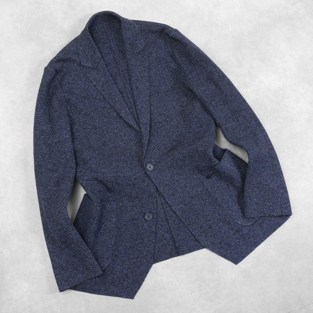 軽量なウール糸を使用し、ミラノリブでガッチリと編み立てたニットジャケットです。編地の雰囲気よりも重量が軽く柔らかな風合いが特徴です。オリジナルで撚り杢をオーダーしLACOSTE独自の色合いに仕上げています。