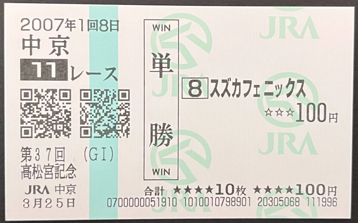 スズカフェニックス 2007年高松宮記念 現地的中単勝馬券