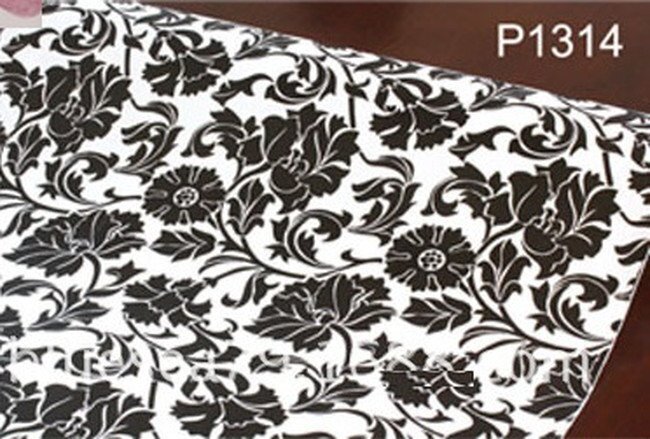 【大量100m】p1314 黒×白 薔薇 クラシック モダン 壁紙 シール リフォーム 多用途 ウォールステッカー はがせる リメイクシート