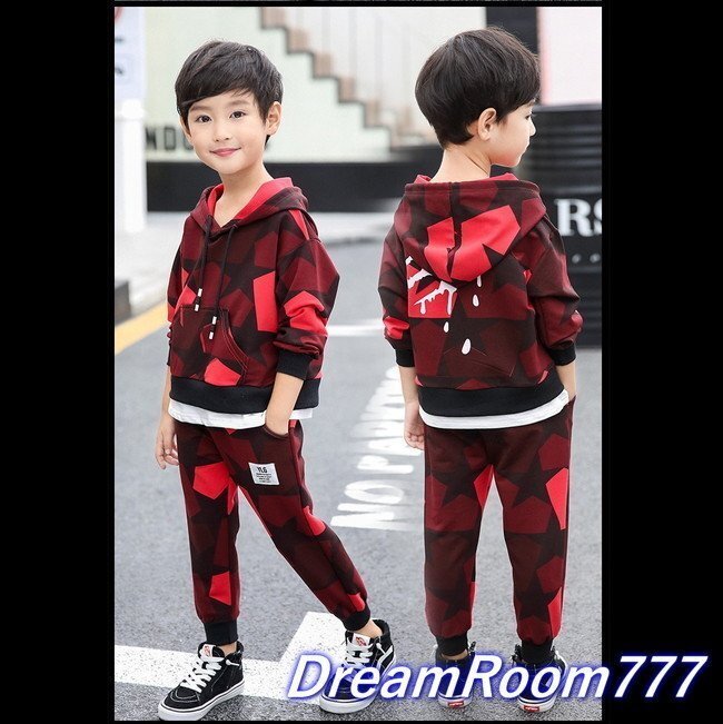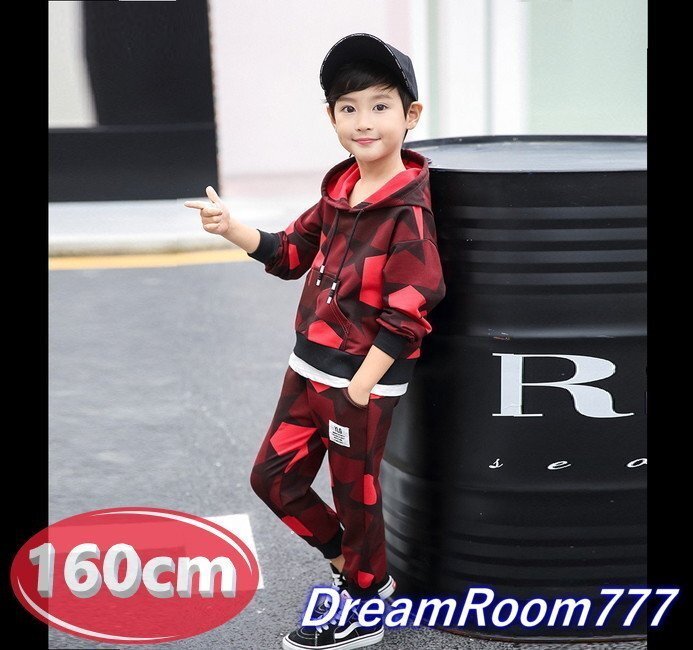 【160cm】ニュアンススター セットアップ レッド パーカー スエット 子供服 女の子 男の子 ルームウェアー 韓国子供服
