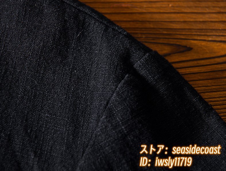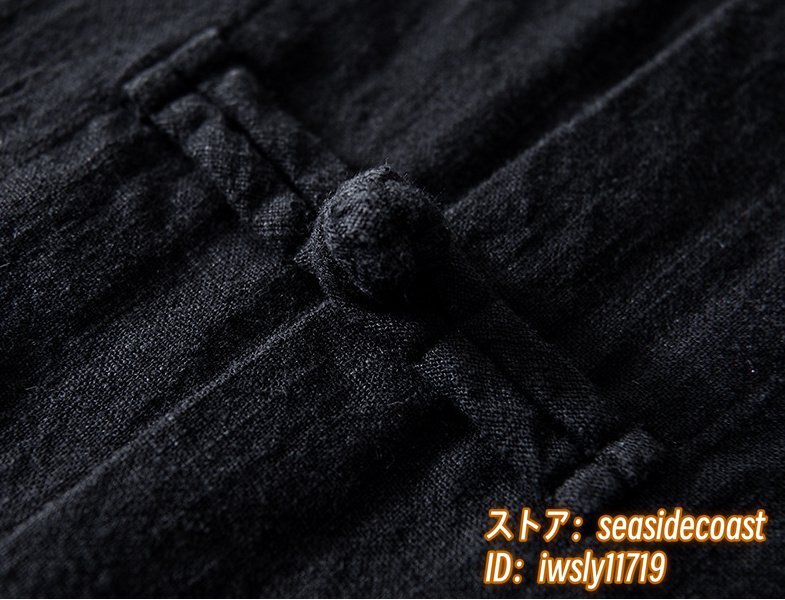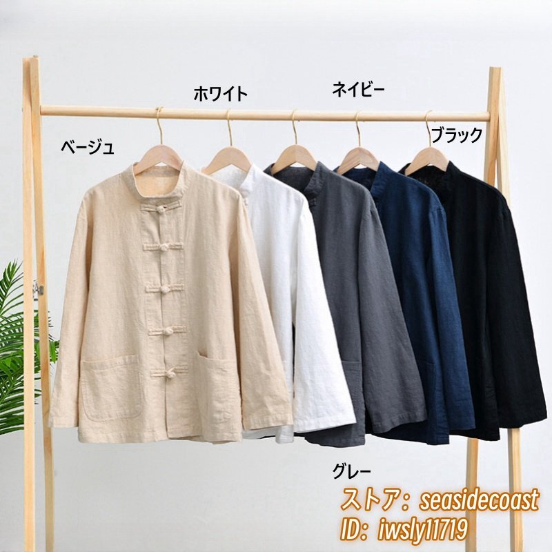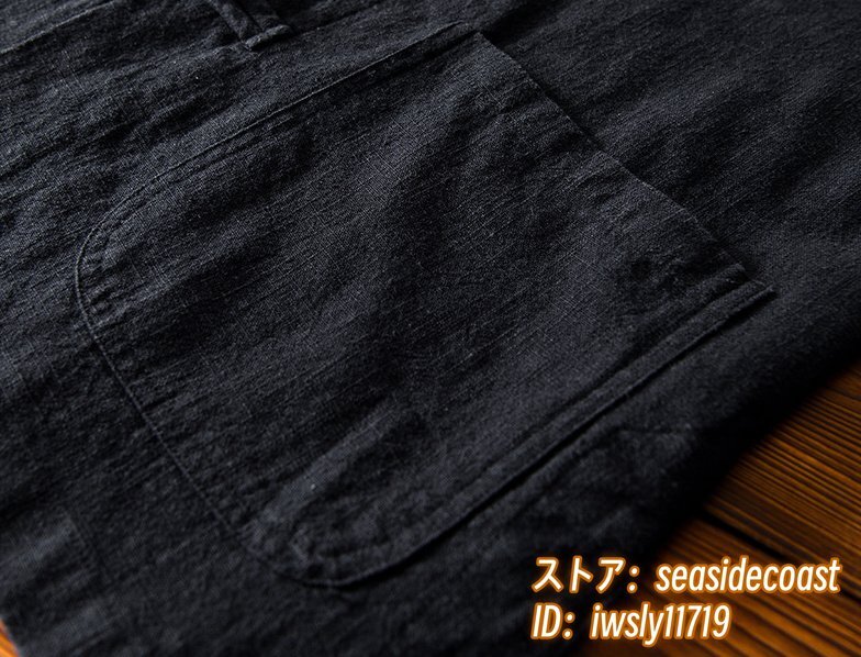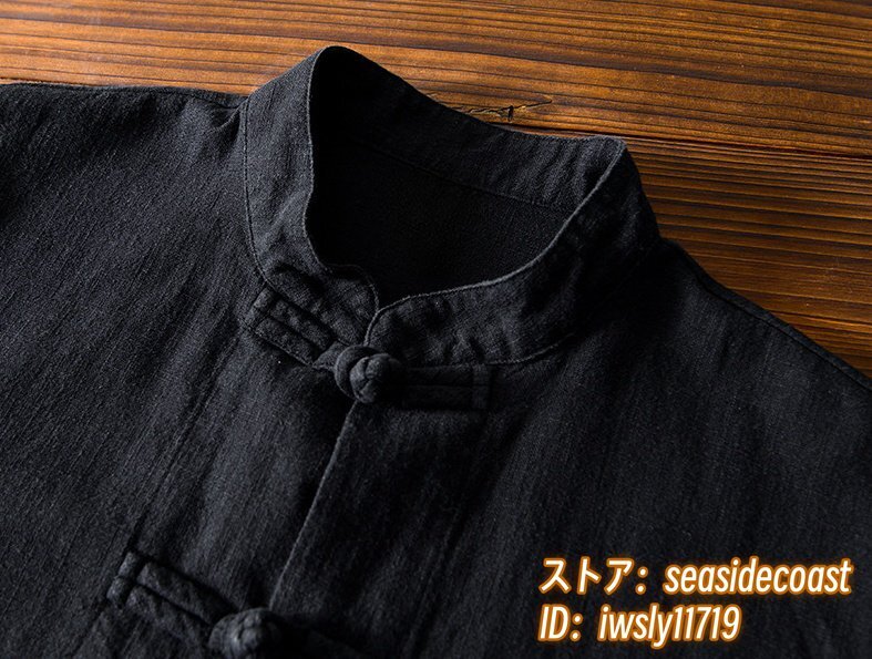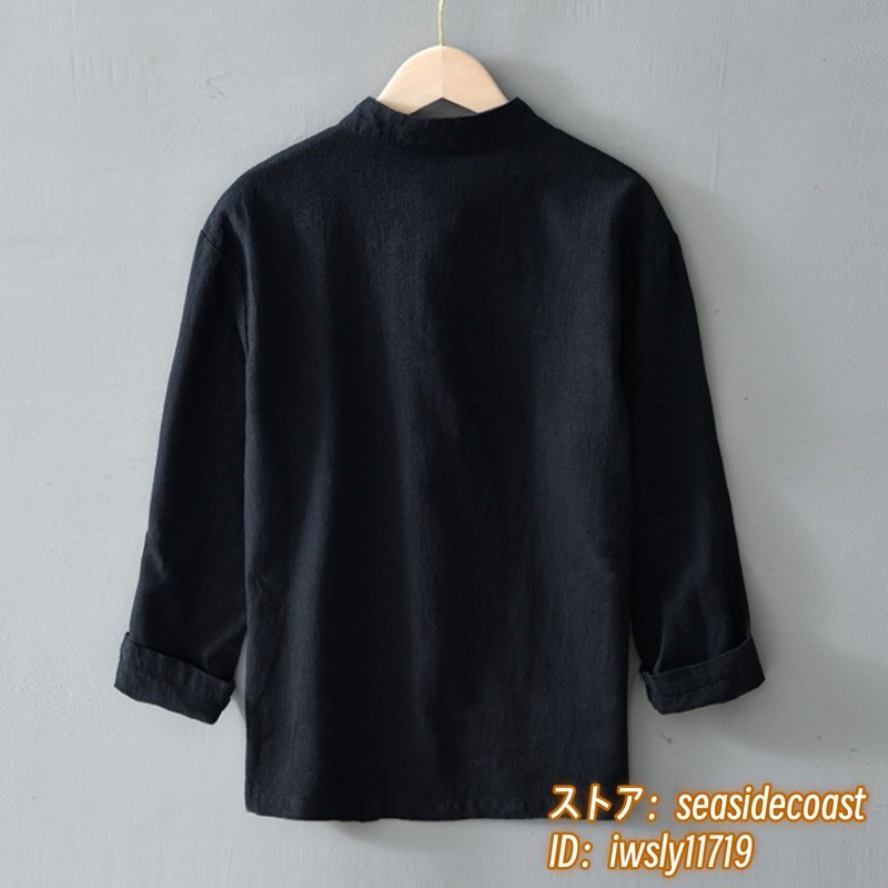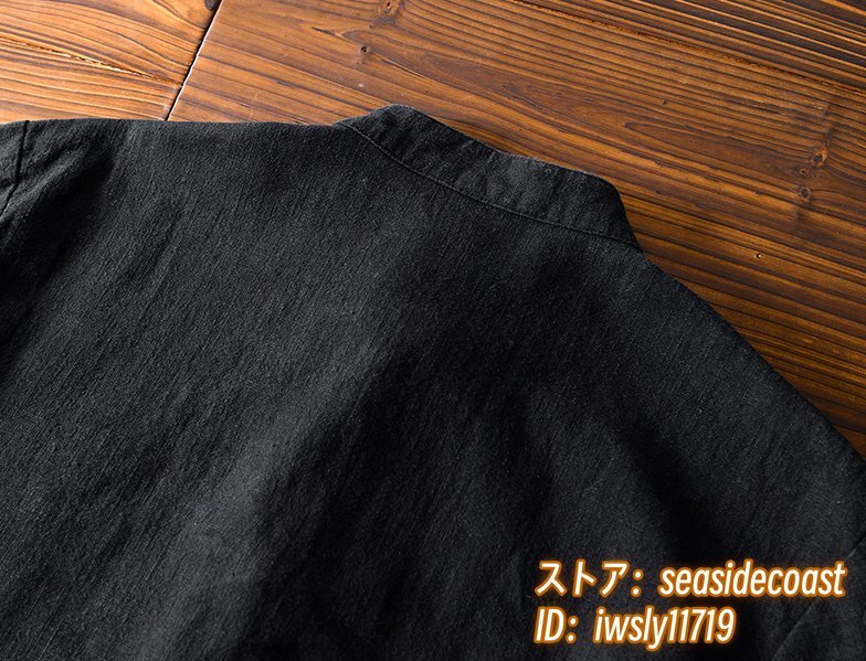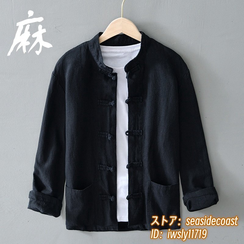 新品◆メンズジャケット 春夏秋 リネン カーディガン 長袖シャツ 綿麻 スタンドカラー 上質 レトロ 立襟 カジュアル 五色選択 ブラック XL