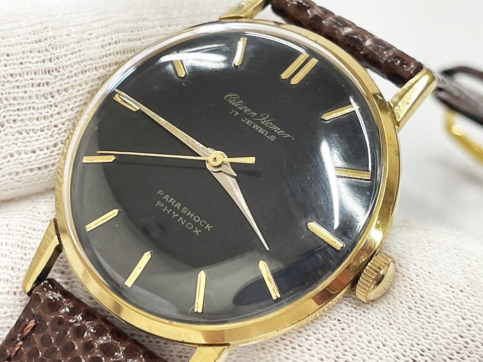 CITIZEN シチズン ホーマー 17石 F15701 金メッキ ブラックダイヤル 黒文字盤 手巻き 稼働 60年代 ヴィンテージ メンズ 腕時計