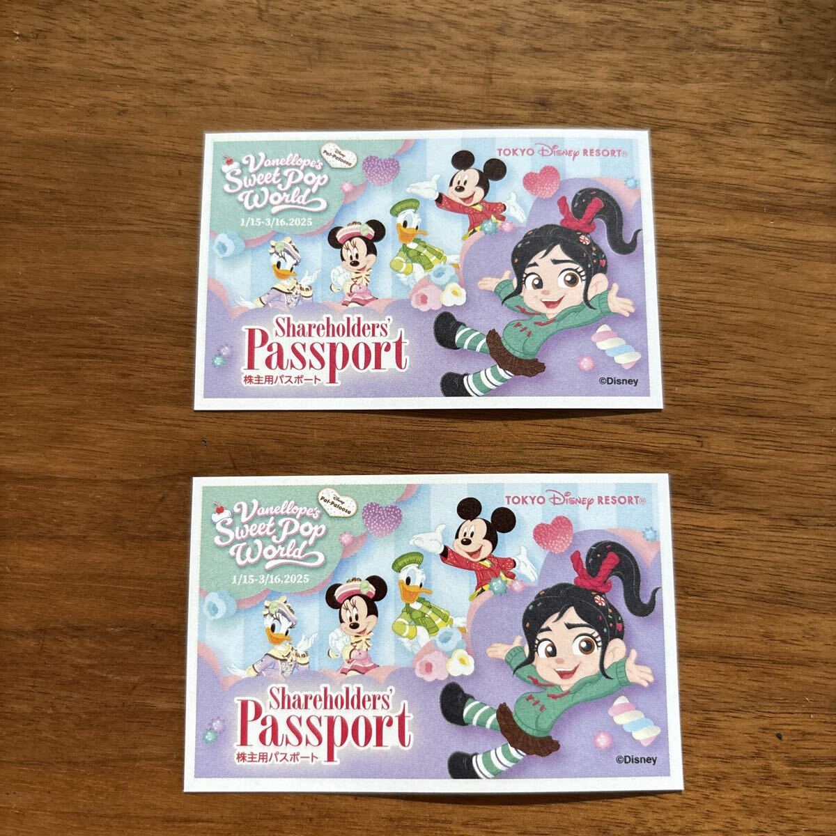 東京ディズニーランドまたは東京ディズニーシーのどちらかで1日に限り使用出来るチケット2枚になります。