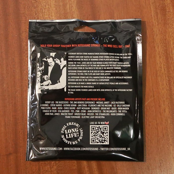 ロトサウンドは、イングランドのケントを拠点とする家族経営の工場において楽器用の弦およびアクセサリーを60年以上に渡り製造し続けてきました。 1958年以来、常に革新的な音楽の最先端を行くロトサウンドの弦は、ブリティッシュ・インベイジョン、パンク、ニューウェーブ、ブリット・ポップ、インディーなど、時代を象徴するレコードに使用されてきました。 高品質な弦を手頃な価格で提供するこだわりによって、あらゆる世代のミュージシャンに選ばれています。 RB45Lは、810mm~860mm(32~34インチ)ロングスケールのエレクトリック・ベース弦です。 通常のラインナップにはない、45-65-80-100のカスタム・ゲージを採用しています。 品質や音色を犠牲にすることなく設計仕様を簡素化し、クラシックなラウンドワウンド・トーンを実現したニッケル・オン・スティールのベース弦です。 SPEC ■String Gauges: .045 / .065 / .080 / .100 ■Material: Nickel on Steel Roundwound ■Tone: Bright ■Output: Medium ●Custom Gauge ●Made in United Kingdom |