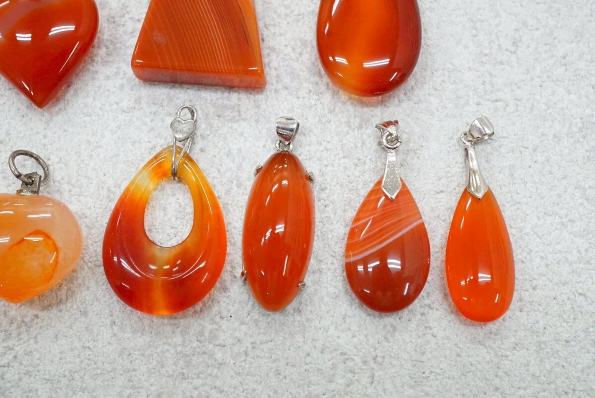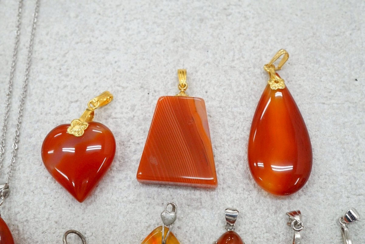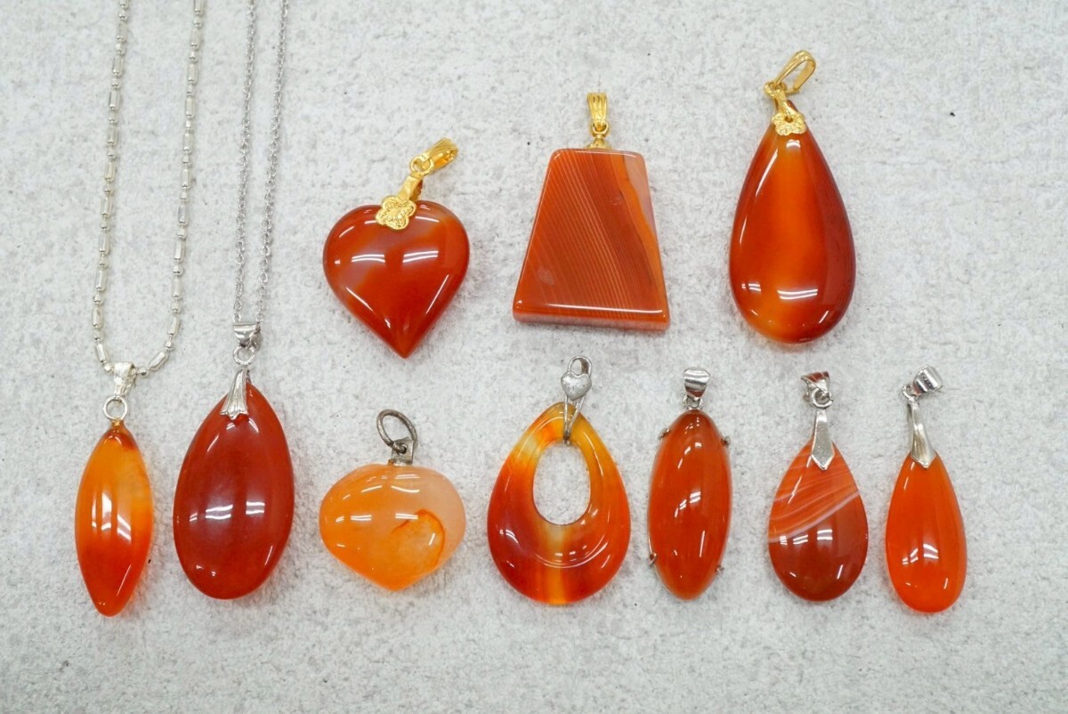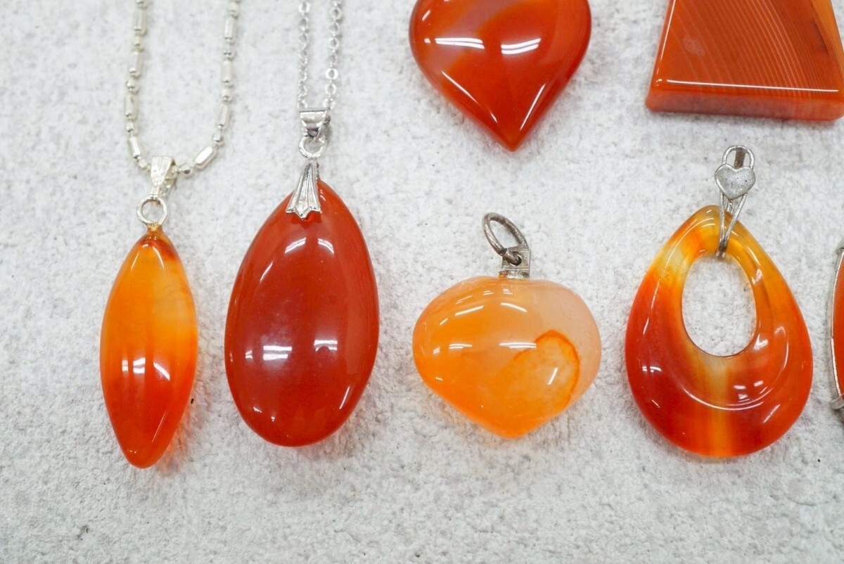 B214 カーネリアン 瑪瑙 カラーストーン ネックレス ペンダント 10点セット ヴィンテージ アクセサリー 大量 まとめて おまとめ まとめ売り