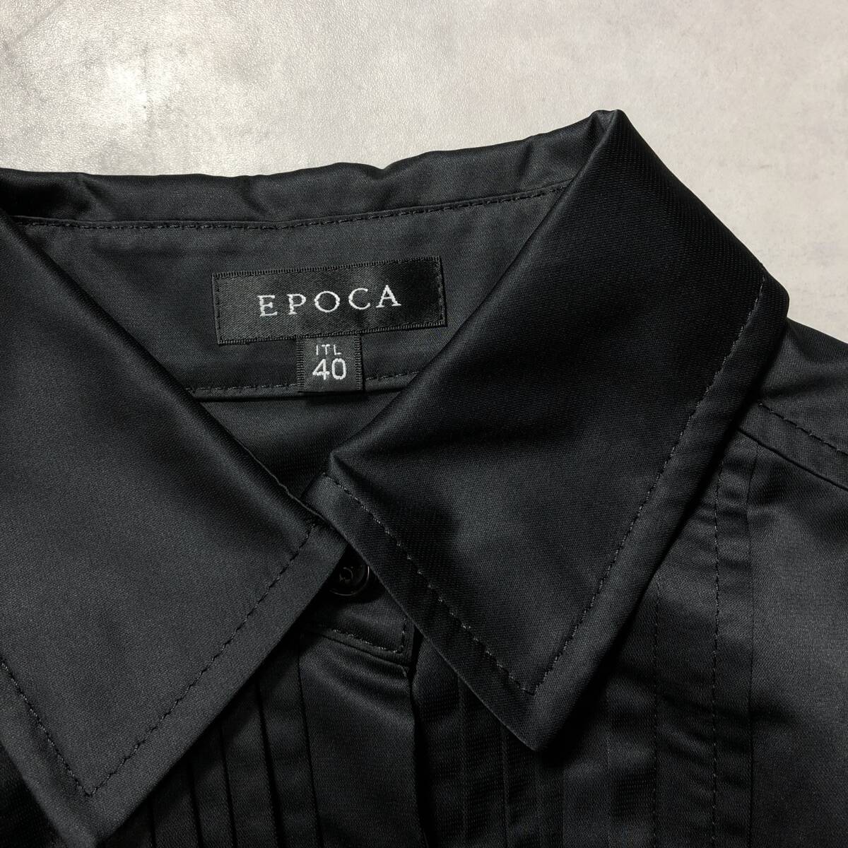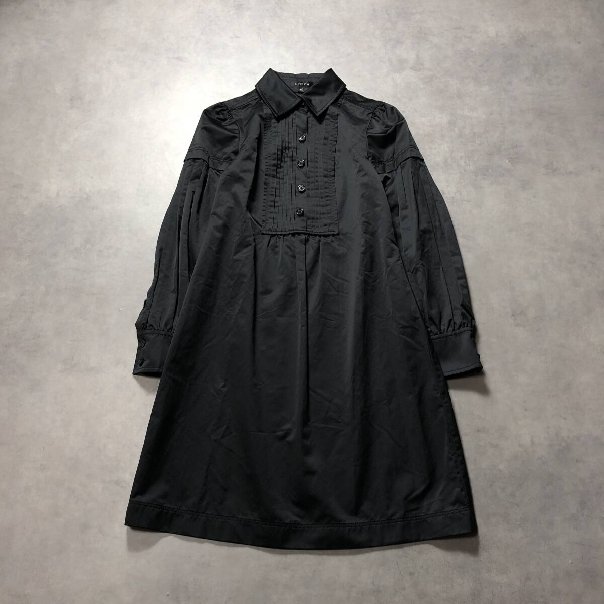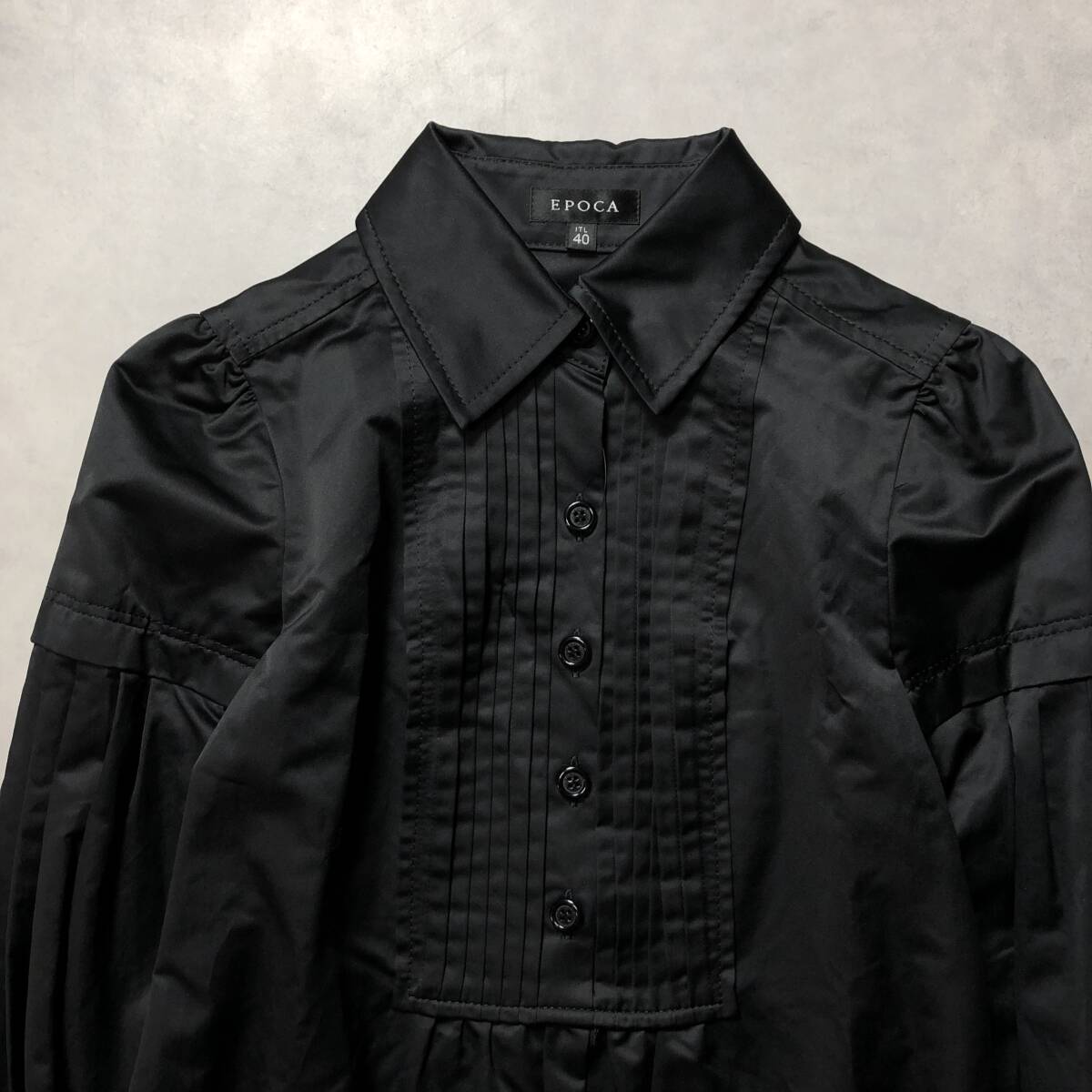 WQ760●EPOCA:ピンタック長袖ワンピース ●40● 光沢のある黒 チュニック 袖タック 日本製 三陽商会 エポカ