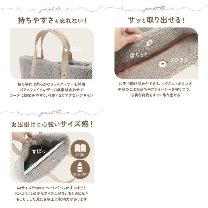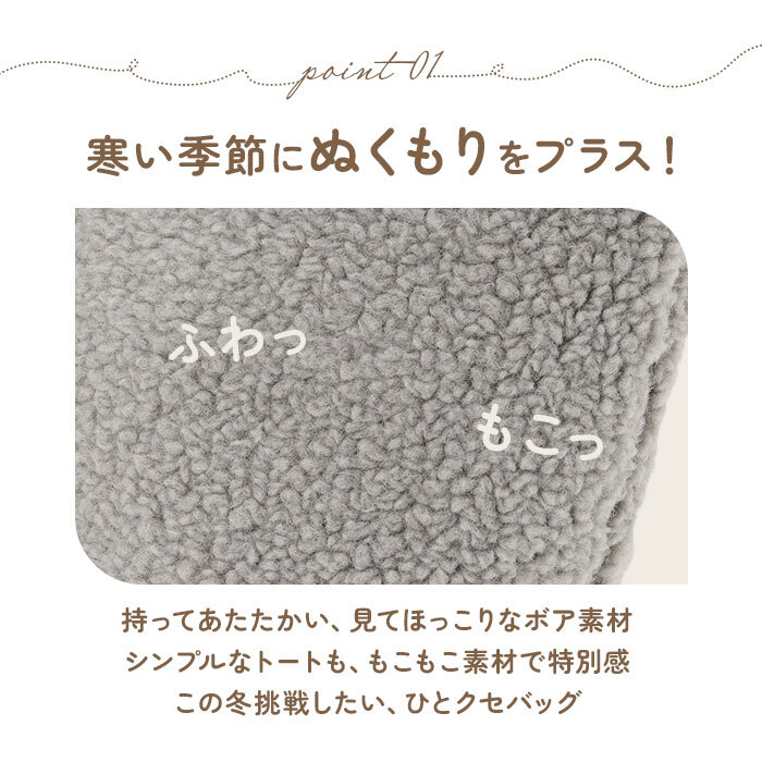 商品説明 | ・・ふんわりあたたかい♪大人女子にぴったりの「e.e.p ボアトート」が新登場。 ・【秋冬コーデのアクセントに】 ・表面ボディを、ふんわり気持ちいいボア素材で仕上げたトートバッグ。寒い季節のコーデにあたたかみをプラス☆ ・【ワンタッチ開閉】 ・開口部は片手で簡単に開閉できる、マグネットボタン式。中身のこぼれ落ちを防ぎつつ、取り出しがスムーズ。 ・【うれしいA4対応サイズ】 ・内側はA4サイズのファイルが横向きにすっぽり。程よいマチを設け、お出かけに必要なアイテムがひとまとめ◎ ・【小物が迷子になりにくい!】 ・・3つの内ポケットには、細々とした物をIN。バッグの中で探す手間を省け、すぐに取り出せるのが嬉しい! ・【手に馴染みやすいハンドル】 ・ハンドルは柔らかな合皮素材。手持ちも腕に掛けても痛くなりにくく、ストレスフリー。 ・【環境にも配慮】 ・裏地にエコ素材を取り入れた、環境にも優しいアイテム。 ・【お気に入りをチョイス】 ・シンプルな無地カラーや、カジュアル感のあるチェック柄をラインナップ。可愛らしい見た目で、お出かけ時のテンションがさらにアップ♪ ・【ポケット仕様】 ・内側:オープンポケット×3 |