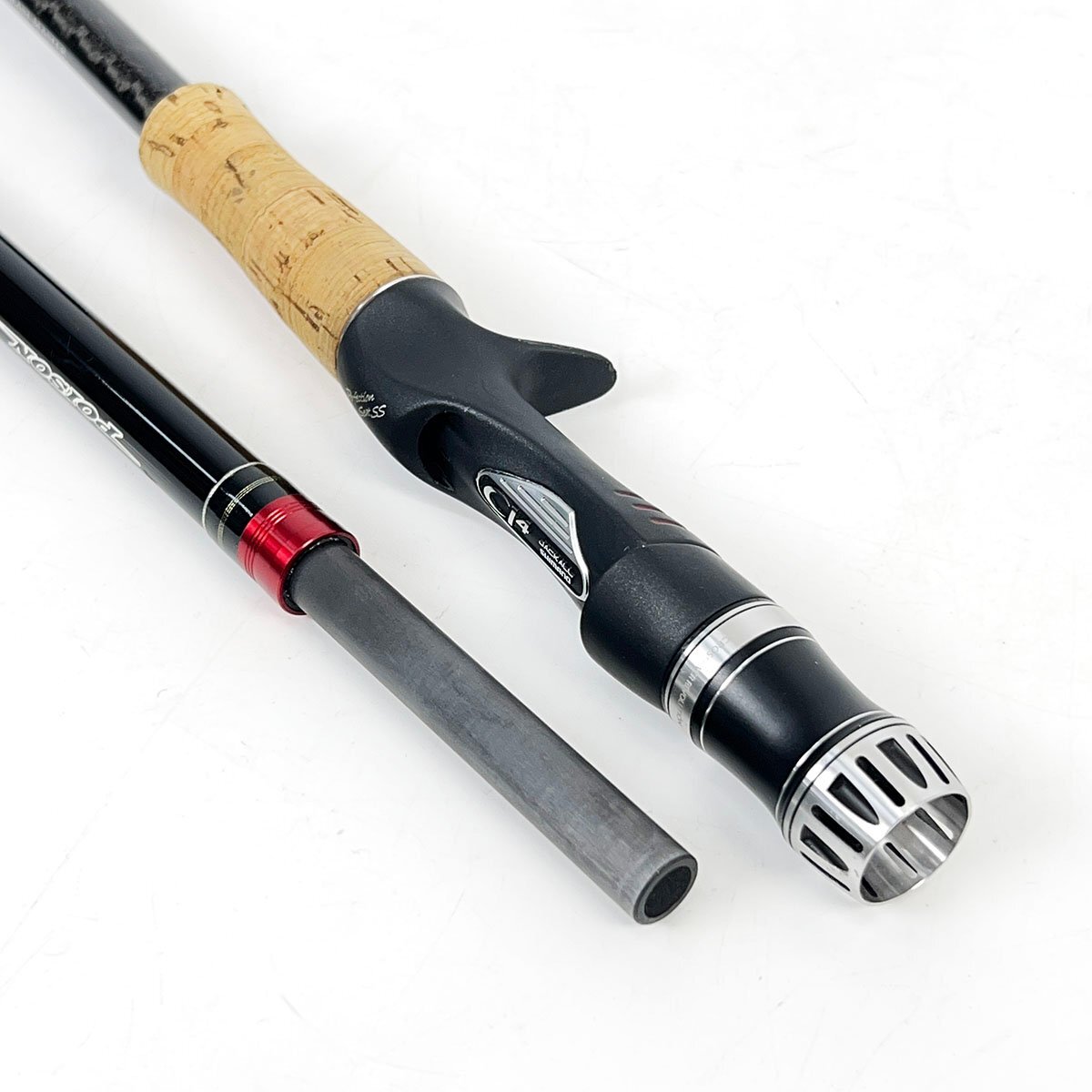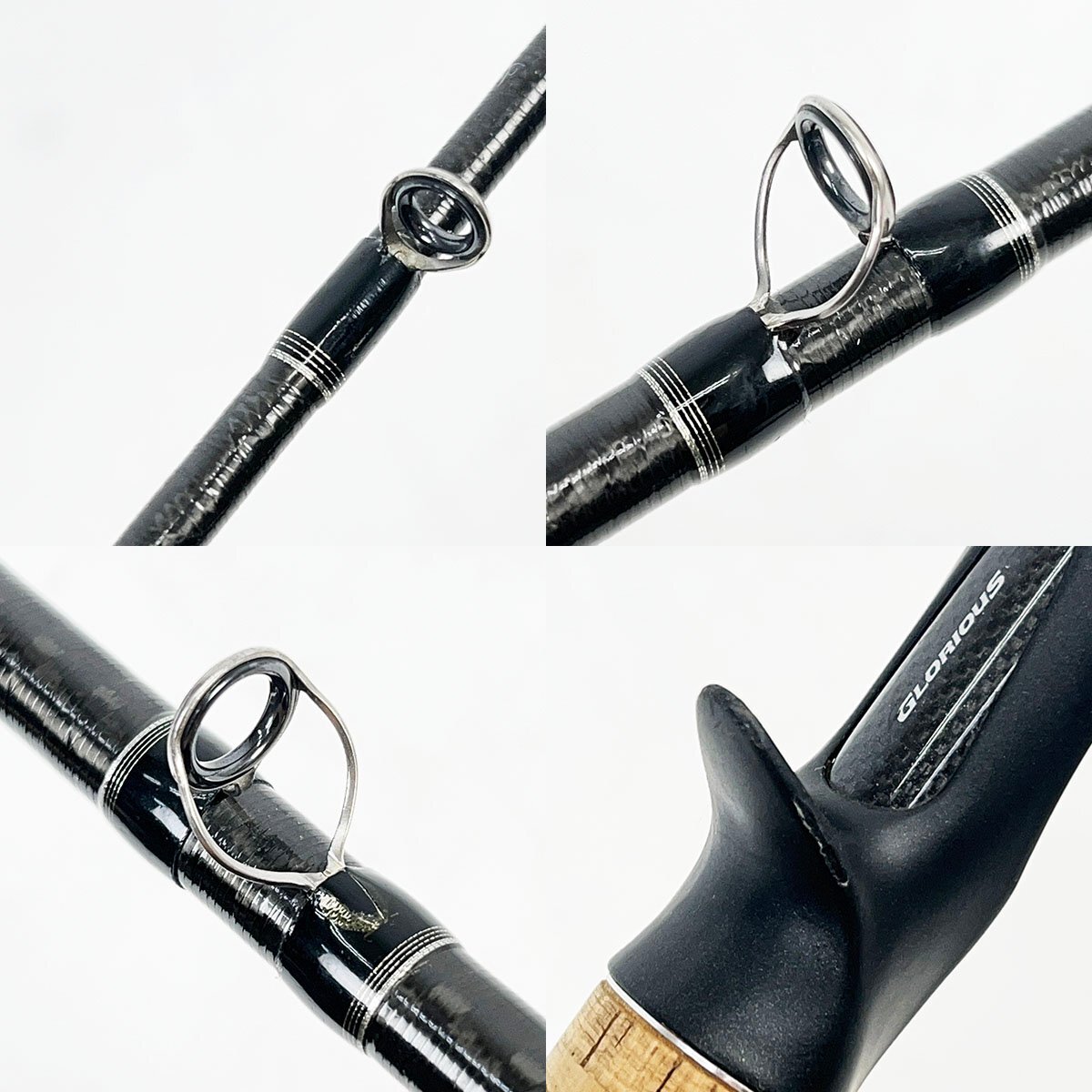 トップから2~4番目のガイドの根元のエポキシが少し欠けており、中の糸が見えています(写真7枚目右上、左下、右下)。