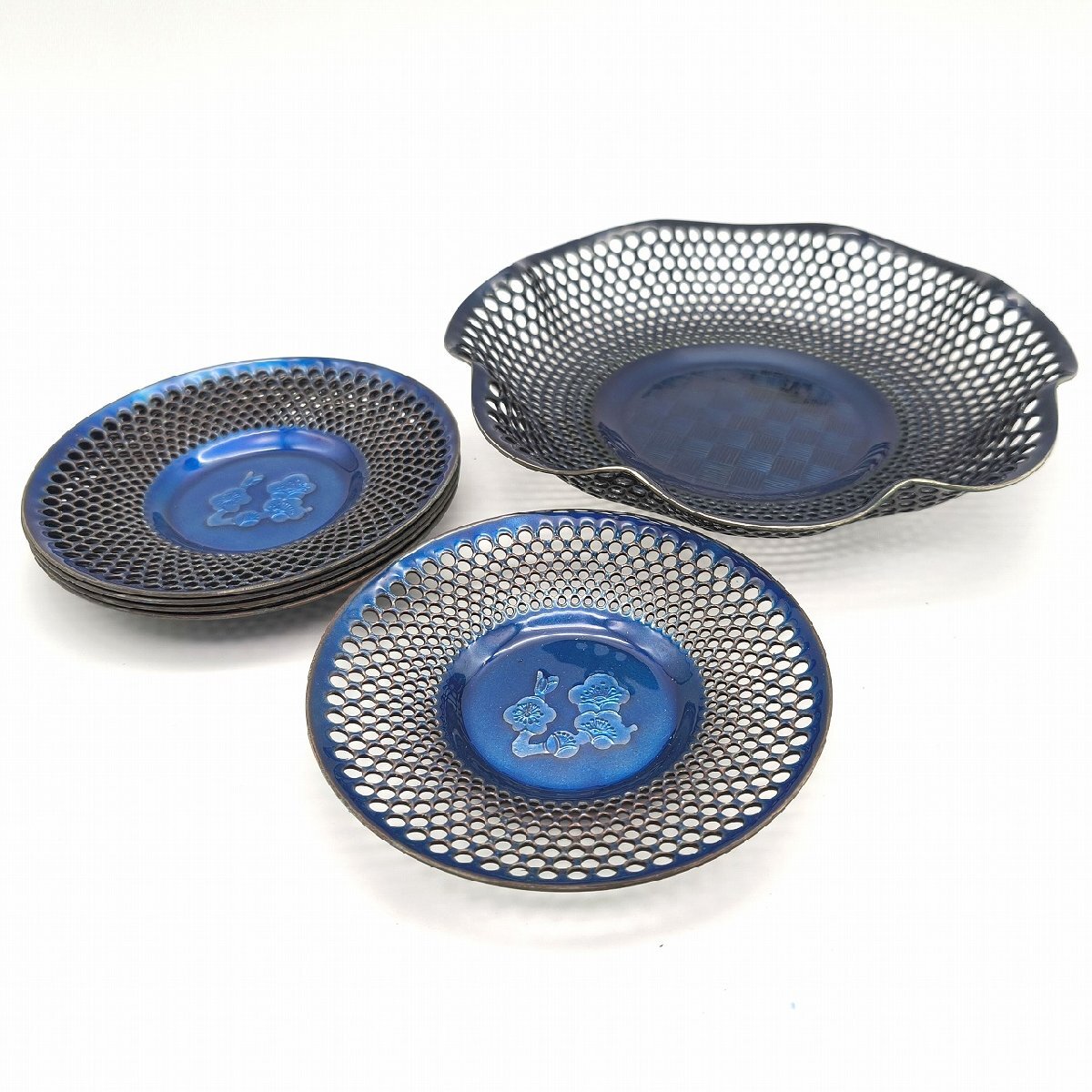 大皿サイズ(直径×高さ):約190×39㎜、小皿サイズ(直径×高さ):約115×16㎜、大皿×1、小皿×5、状態ランク:D 商品は画像に写っているものが全てです。釉のハガレや変色が見受けられます。その他状態は画像をご確認ください。