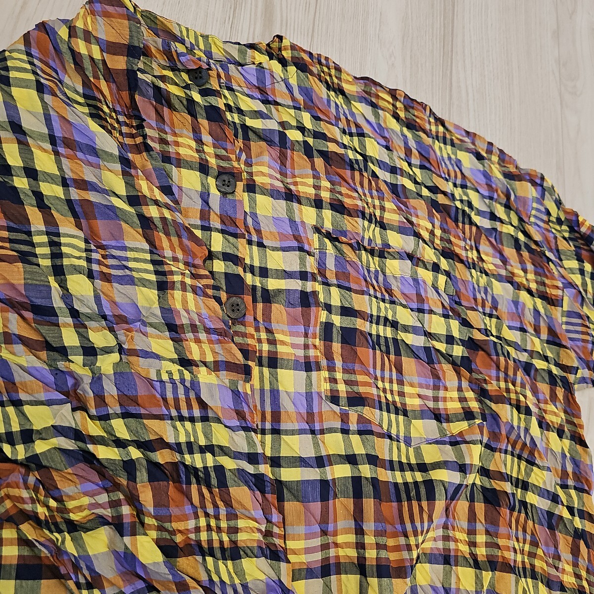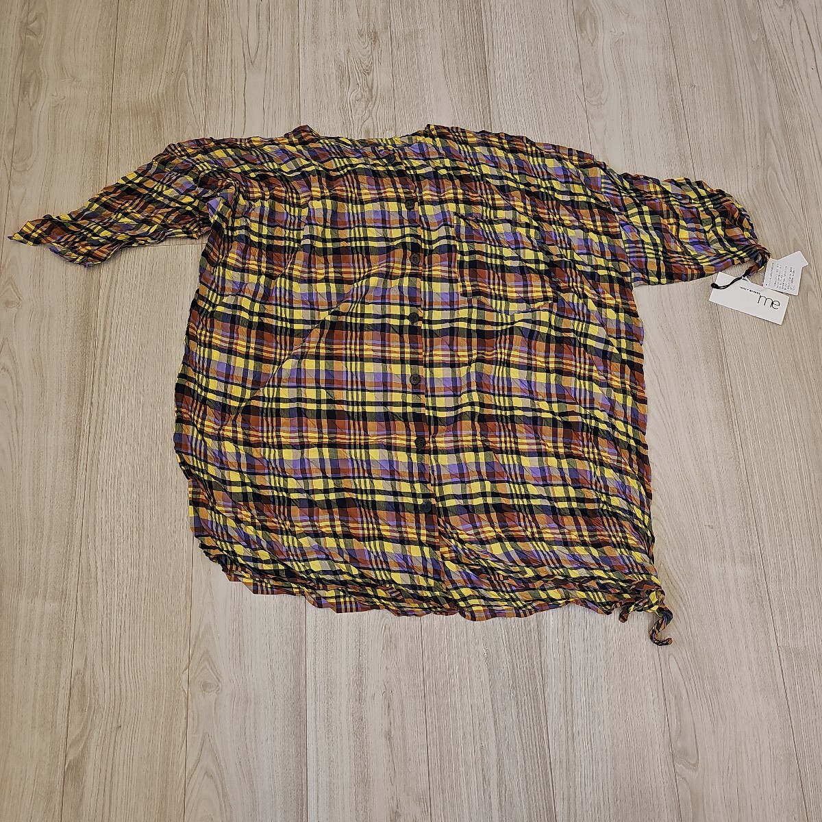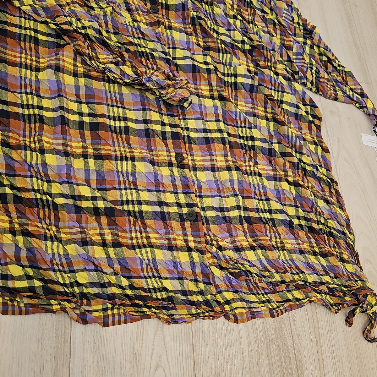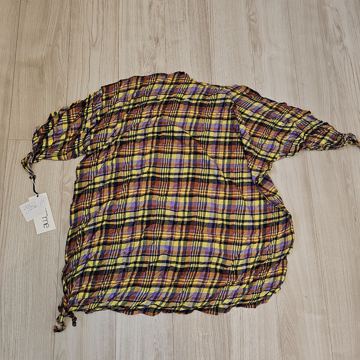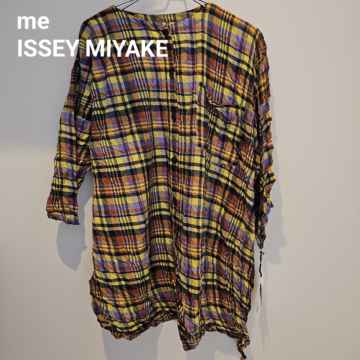 ■新品 タグ付き ISSEY MIYAKE me イッセイミヤケ ミー ツイスト加工 ワイド フリーサイズ チュニック チェック トップス パープル系×イエロー系