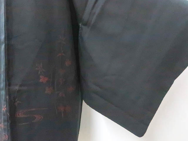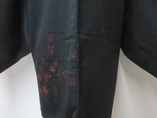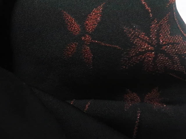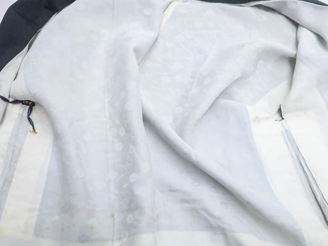 リサイクル商品のため、羽裏にしみがございますがご着用いただけると存じます。 地色は 黒です。 1枚目の画像が近いお色かと思われます。 素材は正絹です。 |