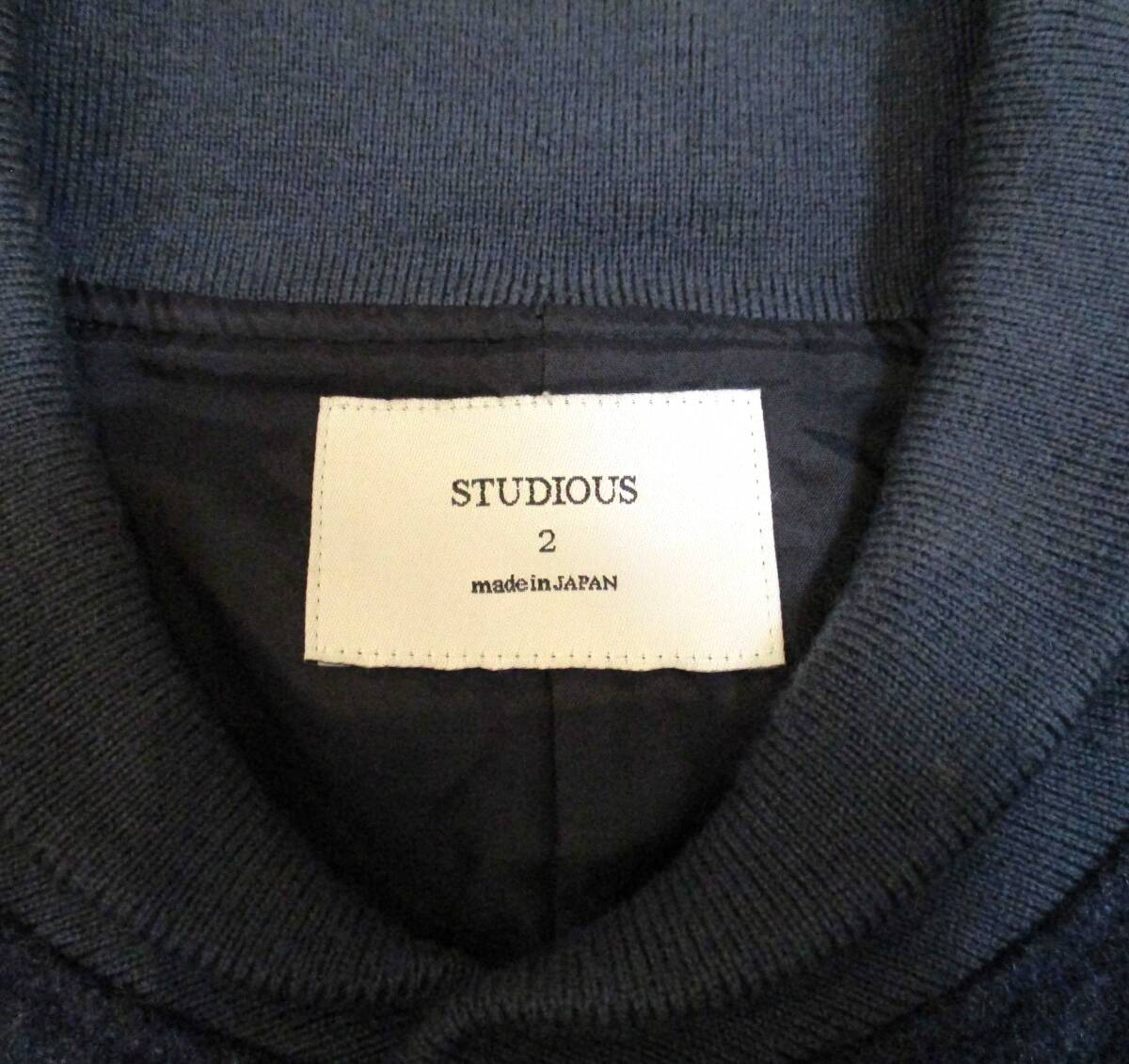 STUDIOUS 袖革スタジャン ラムレザー カシミア混