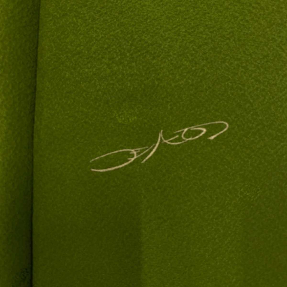 | 色無地 美品 秀品 落款 コシノヒロコ 地紋 よもぎ色 袷 身丈169.5 裄丈67 M 正絹 【中古】 |