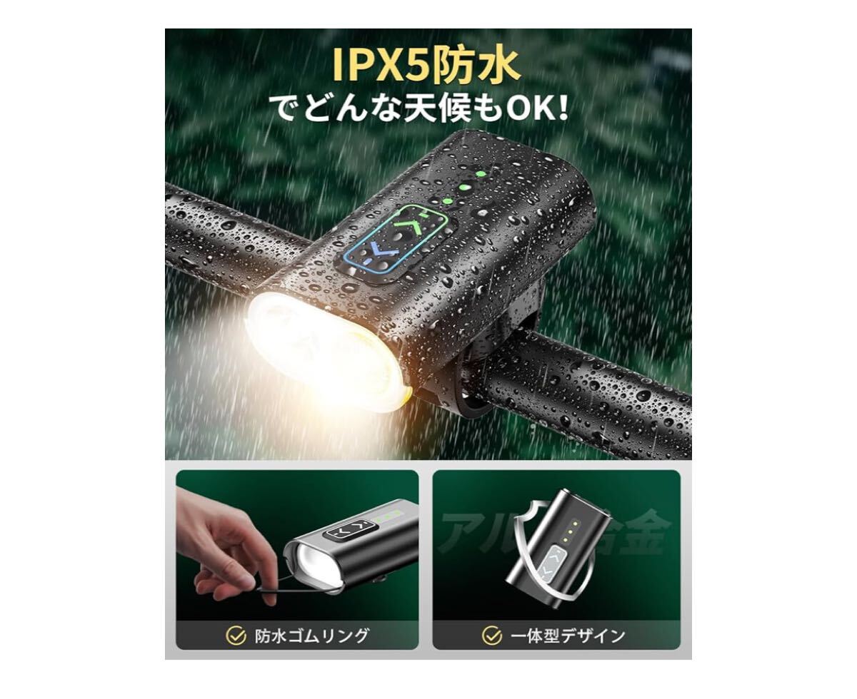 【高耐久アルミ合金ボディ・IPX5防水設計】この自転車用ライトは、堅牢で耐久性に優れた航空機グレードのアルミ合金を採用し、ネジのない一体成型デザインとなっています。衝撃や振動にも強く、アウトドア走行や未舗装路でも安心して使用可能です。さらに、5mm厚の防水ゴムリングを備えており、優れたIPX5防水性能を実現。雨の日も雪の日も、過酷な天候や路面状況に負けず、安定した照明を提供します。