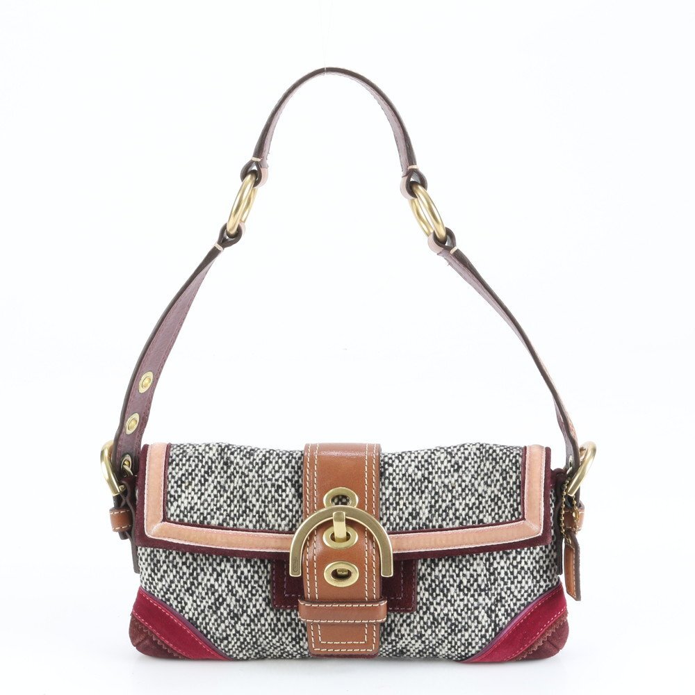 1円■極美品■コーチ■ソーホー ツイード デミフラップ バッグ レザー 肩掛け ショルダー トート ハンド 8F01 レディース ERE CV6-4