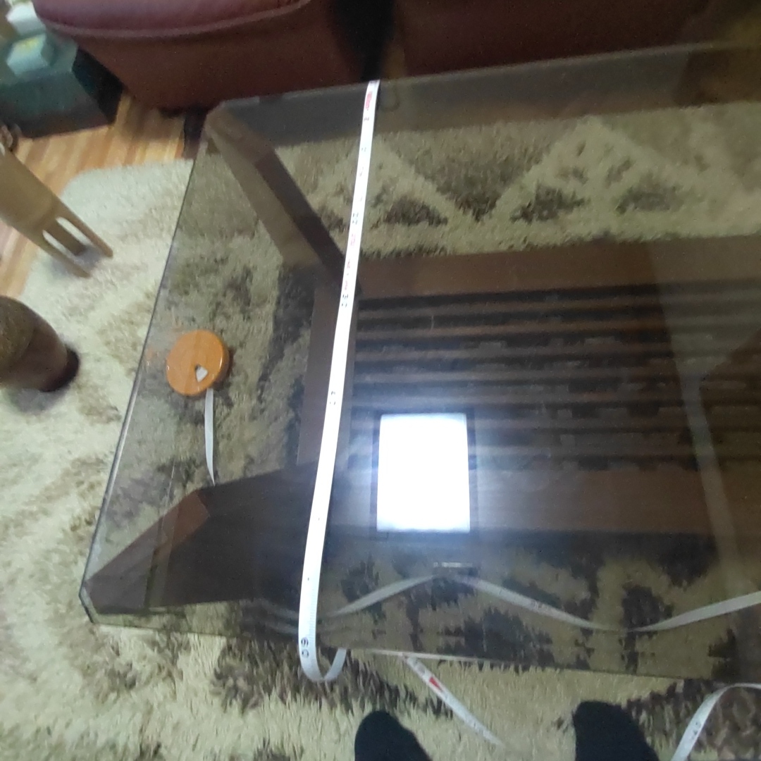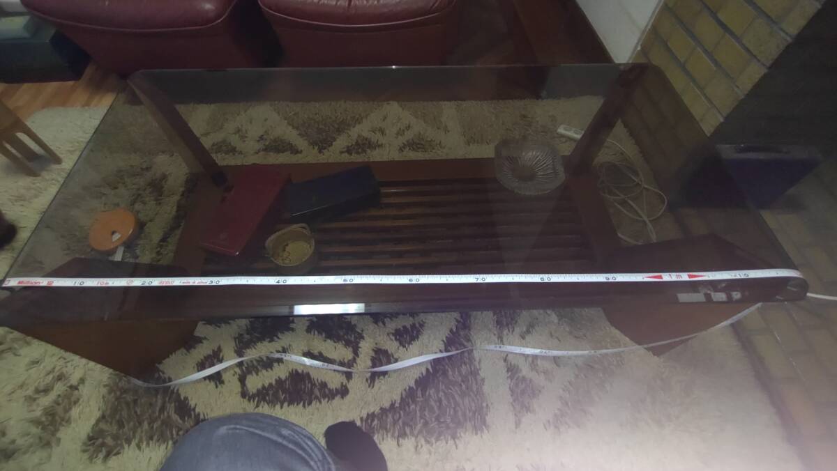 中古 強化ガラステーブル w60cm x L120cm x h34cm 詳細写真でご判断ください。