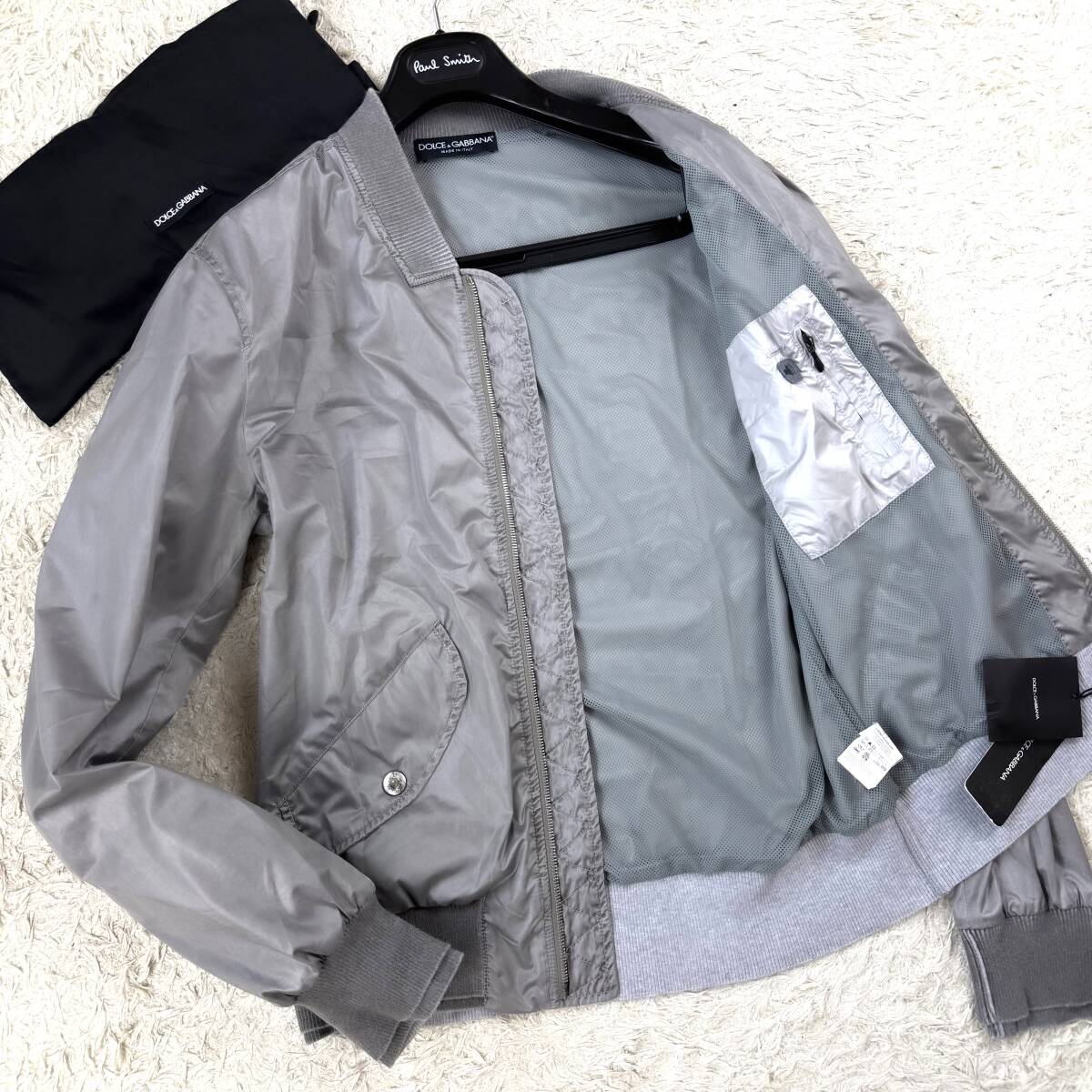 定価34万銀タグDOLCE&GABBANAフライトジャケット最高級黒タグラインXL.LL~Lシルバーグレー銀灰色48メッシュ ドルガバ ドルチェ&ガッバーナ