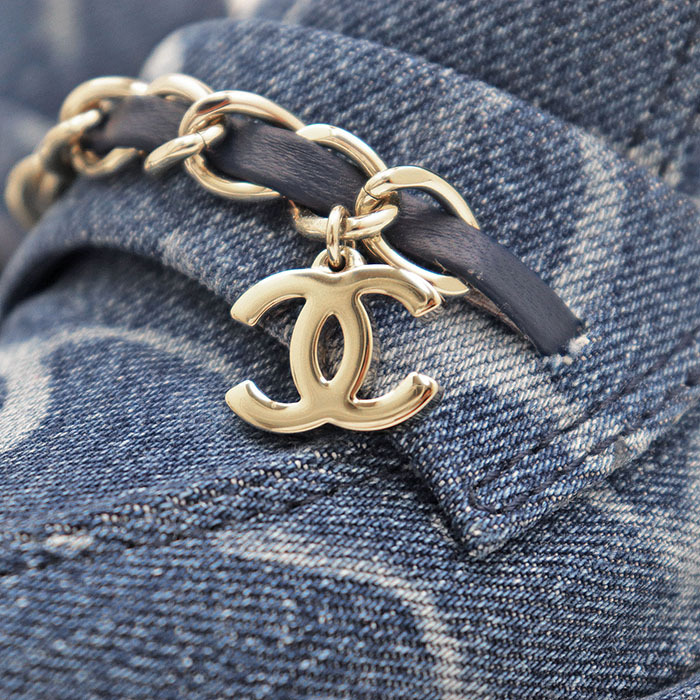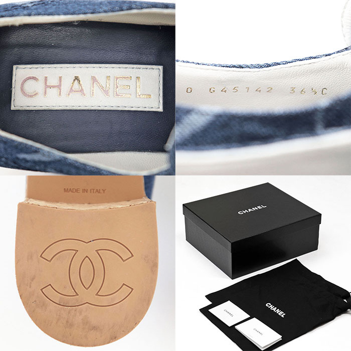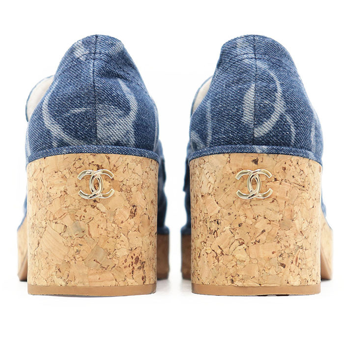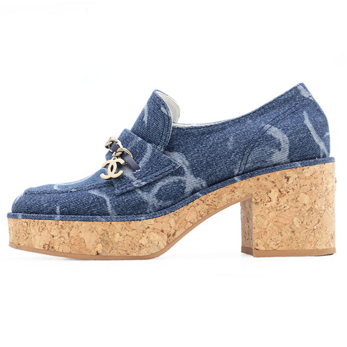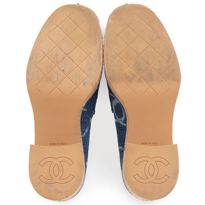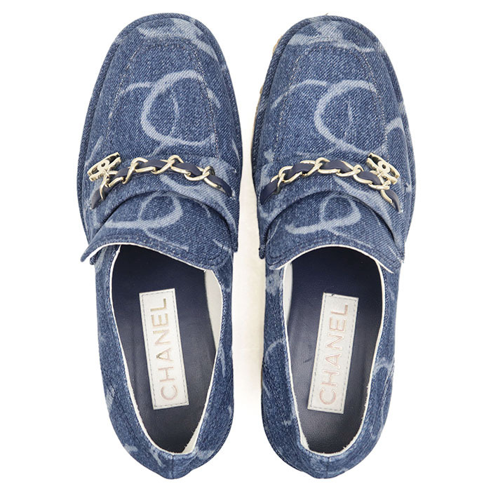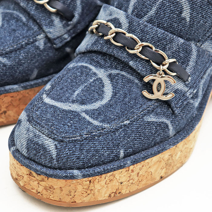 CHANEL シャネル ローファー デニム コルクソール G45142 CC ロゴ チャーム モノグラム 厚底 箱・袋付属 レディース 36.5C インディゴ 伊製
