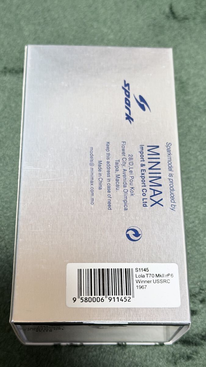 【長期保管品】1/43スケール ダイキャストモデル Sparkmodel MINIMAX S1145 Lola T70 Mkll n°6 Winner USSRC 1967 ローラ T70