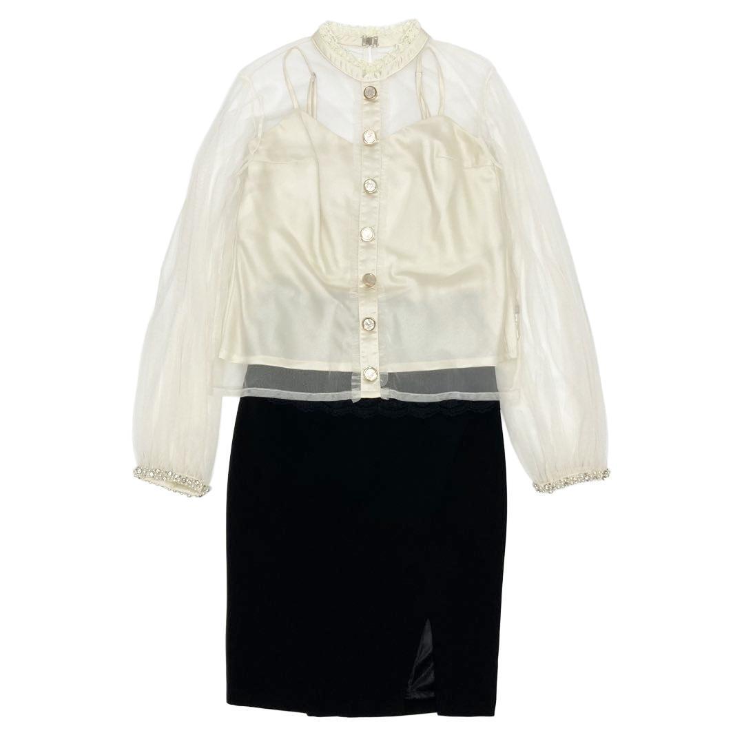 チュールとビジューを使用した上品セットアップタイトドレス