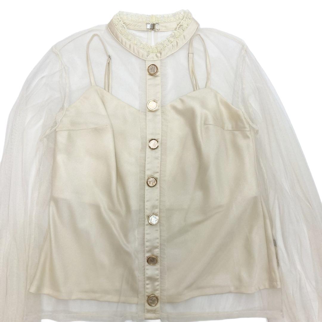 長袖シアートップス、インナーキャミソール、スカートの3点セットです。
