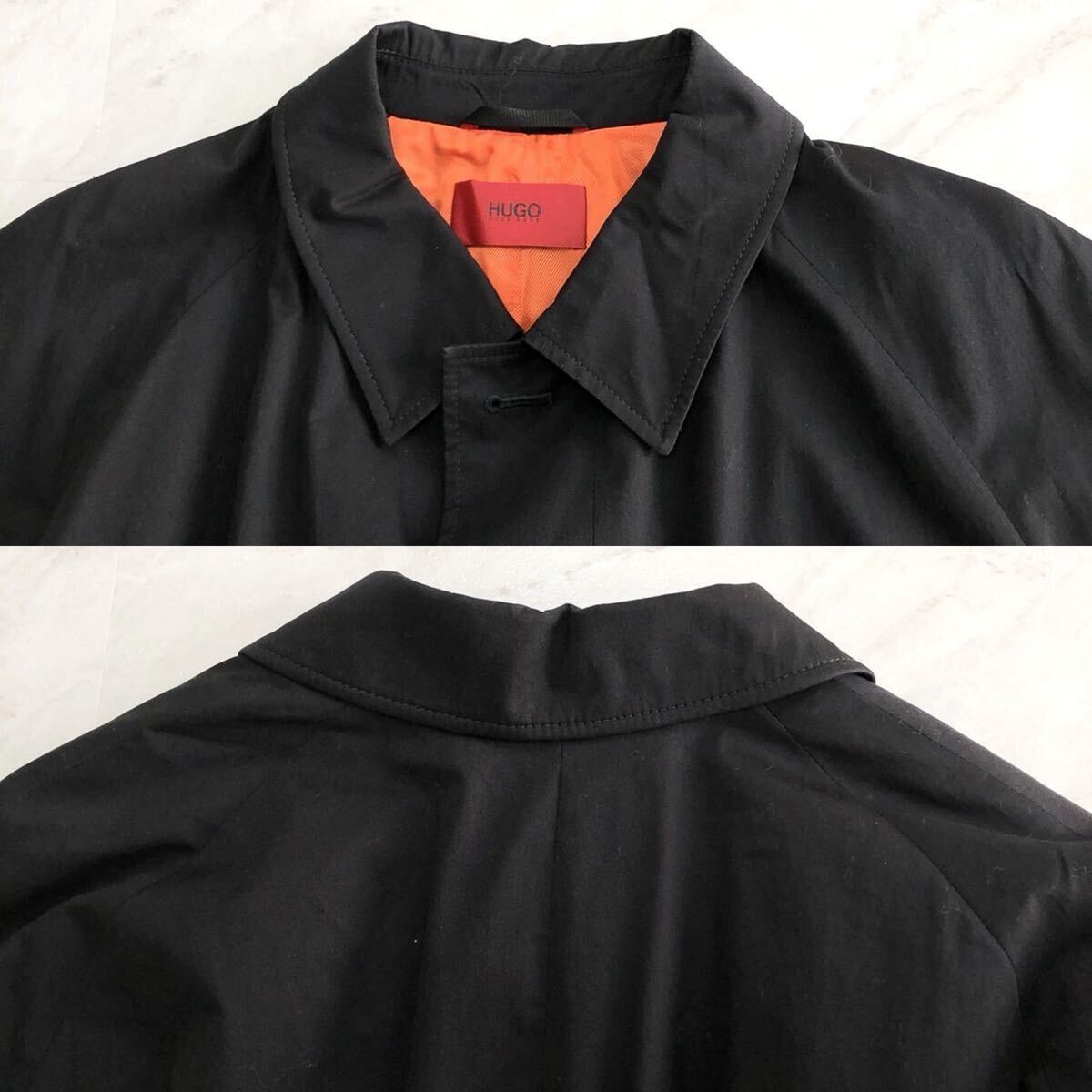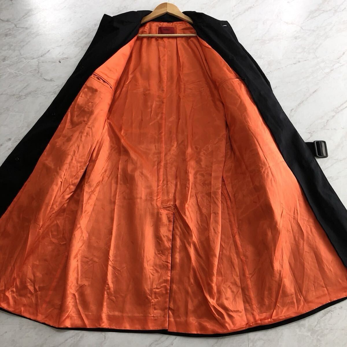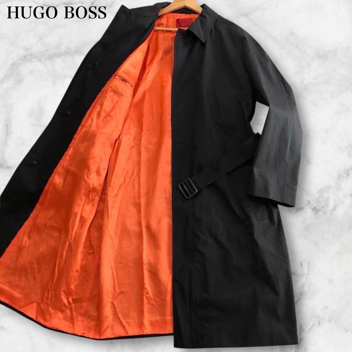 美品/Lサイズ●HUGO BOSS ヒューゴボス 赤タグ ベルテッド ステンカラーコート ロング アウター ベルト付き ビジネス ブラック 黒 メンズ