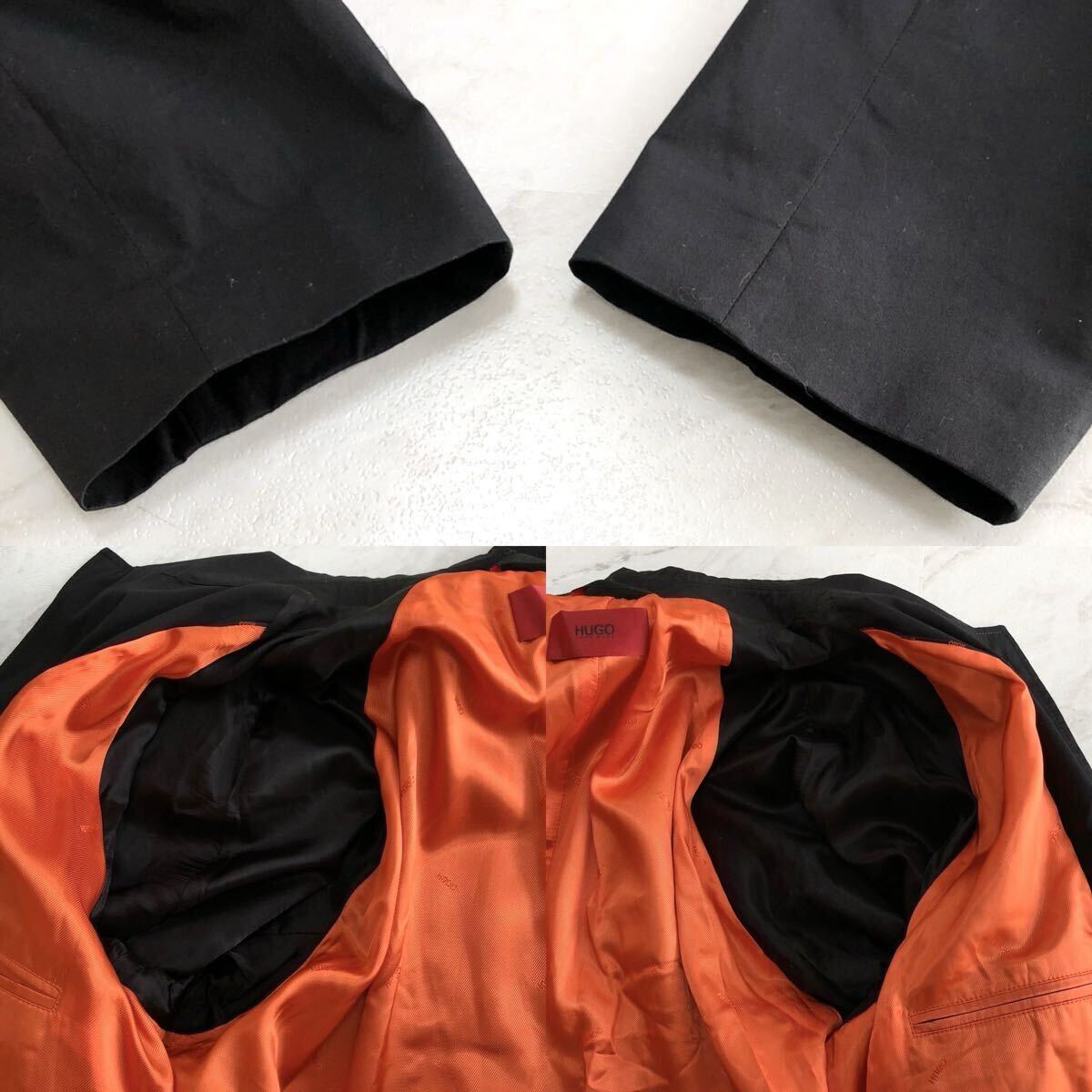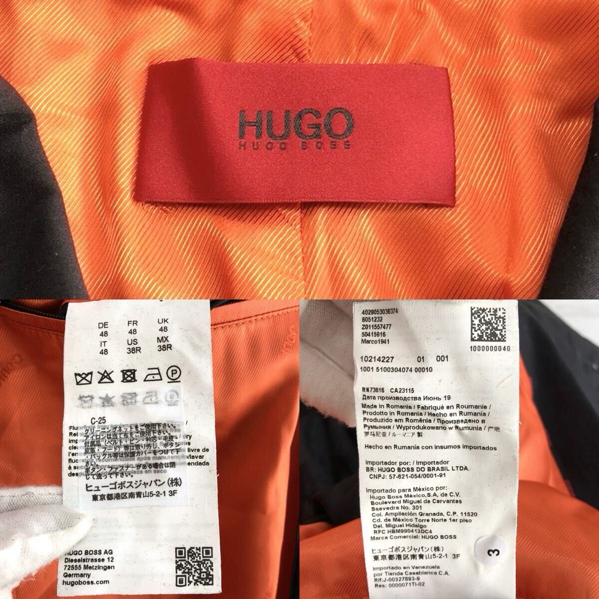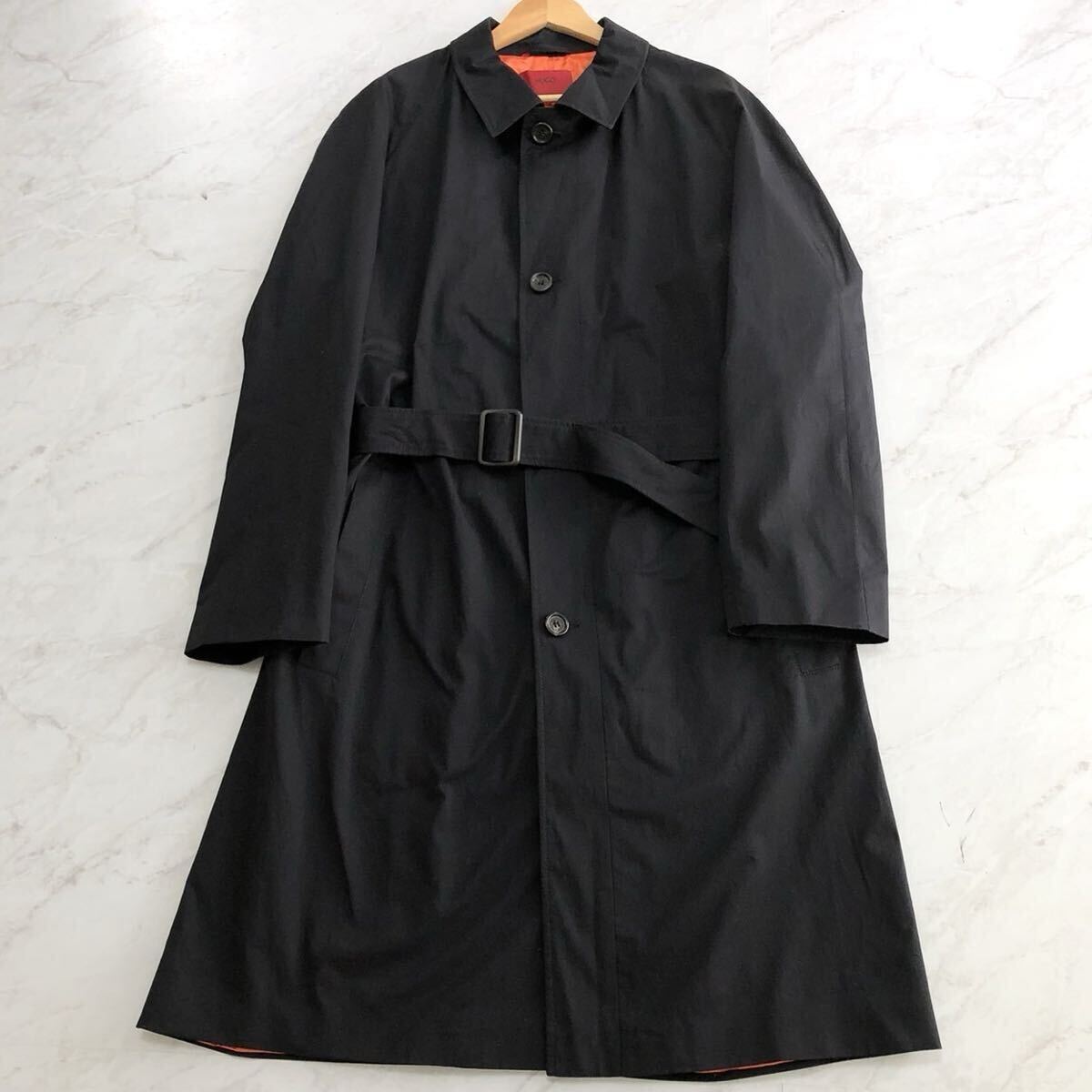 美品/Lサイズ●HUGO BOSS ヒューゴボス 赤タグ ベルテッド ステンカラーコート ロング アウター ベルト付き ビジネス ブラック 黒 メンズ