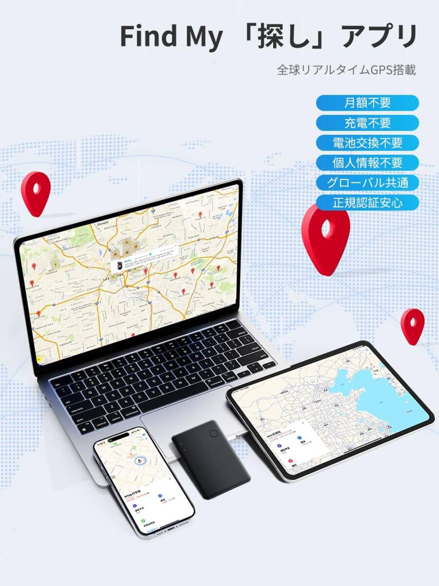 紛失防止タグ 極薄1.8mm 1000KM超遠距離追跡 エアタグ スマートトラッカー GPSタグ airタグ IP68防水 MFI