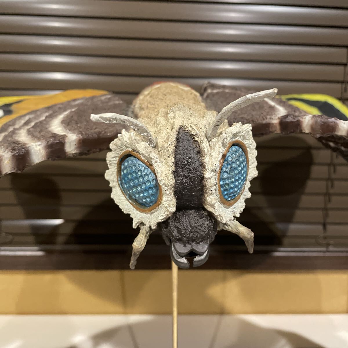 翼を広げればおおよそ90cmもの超大型モスラです。塗装済み完成品になります。モスラフィギュアで1番大きいかと思います。とても珍しいものです、探していた方は是非。