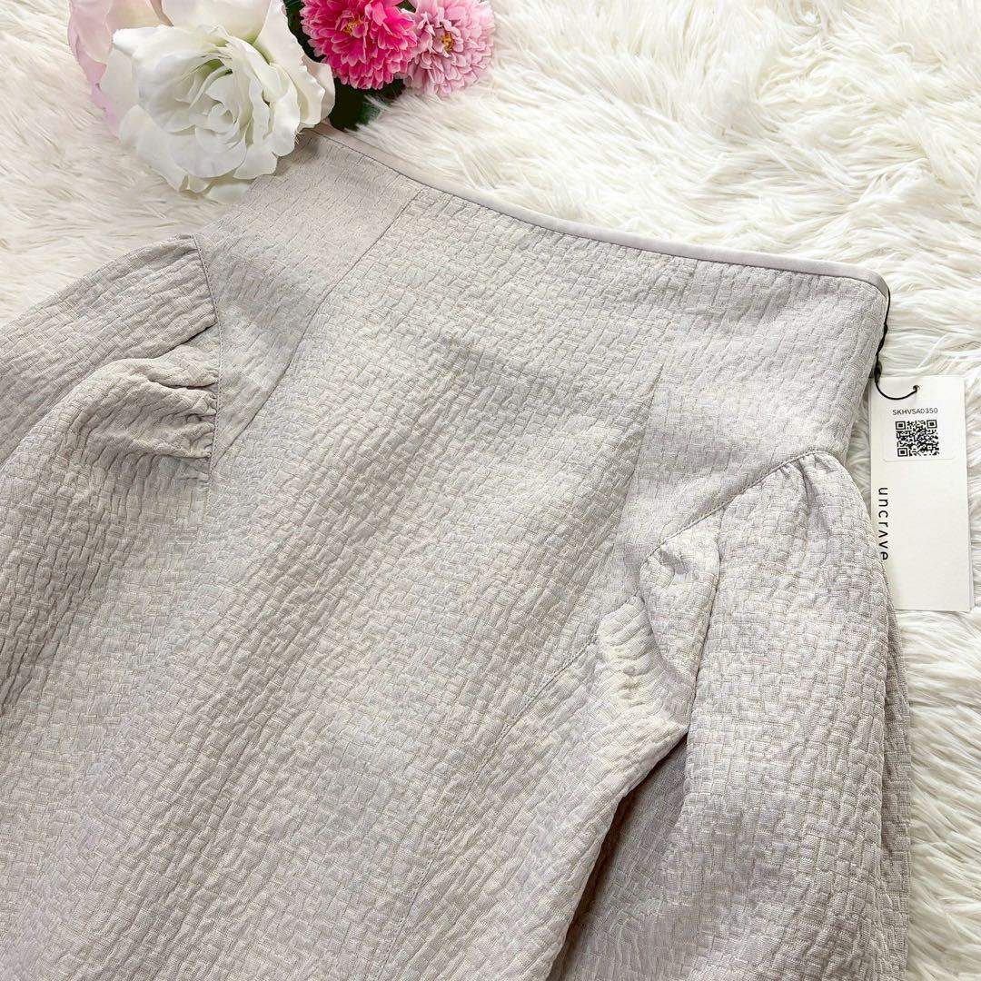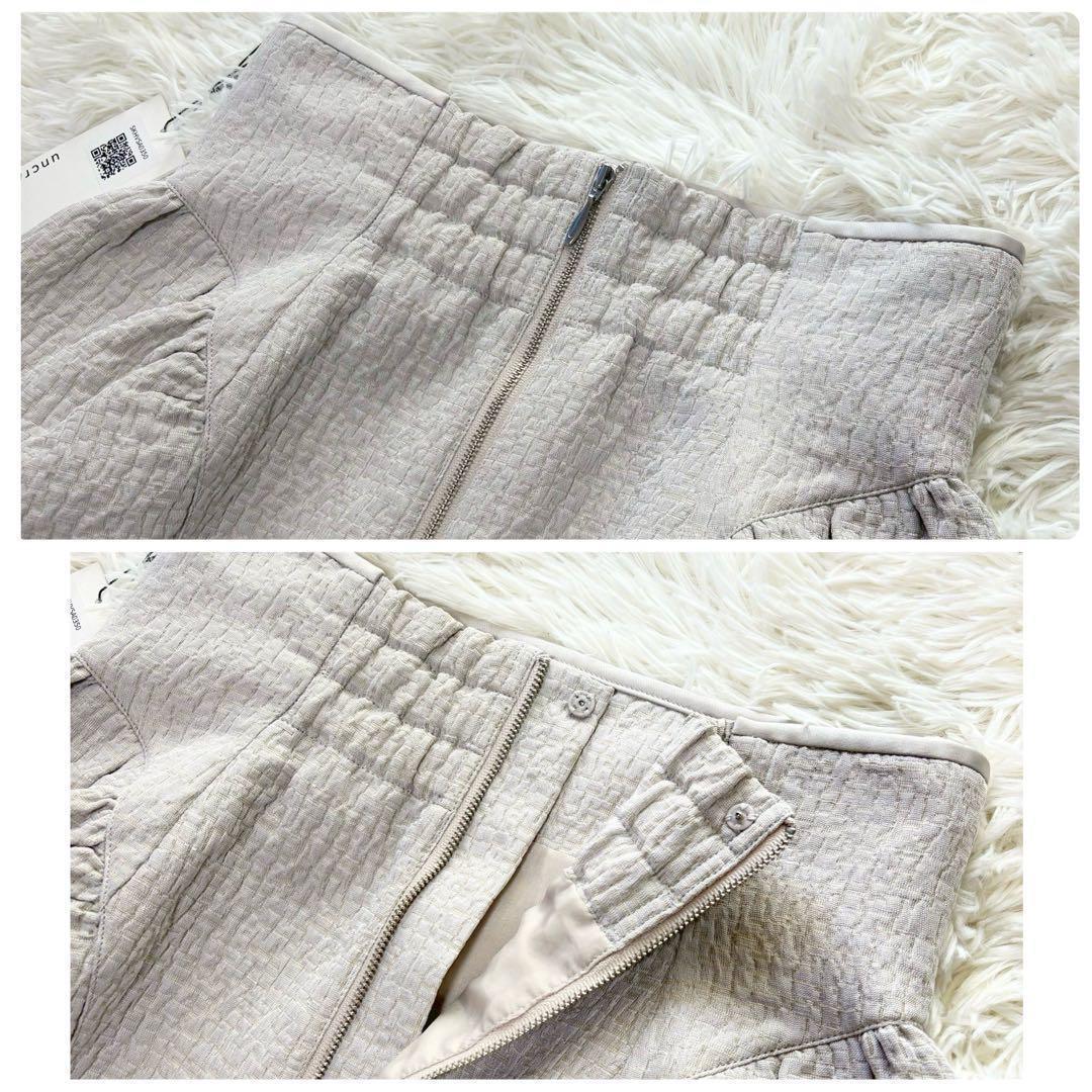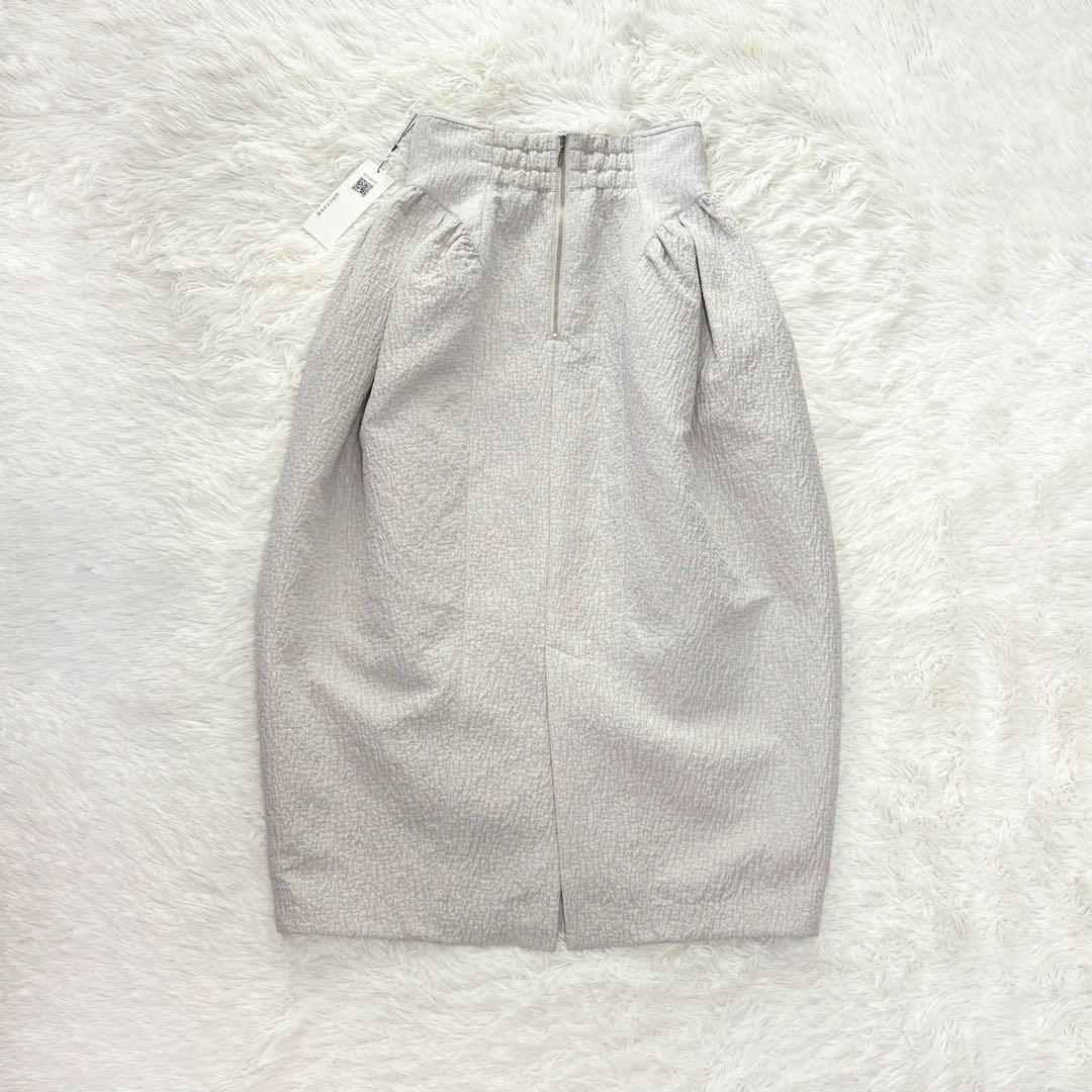 フクレジャガードの高級感とハリ感を生かした、コクーンシルエットのハイウエストスカート。